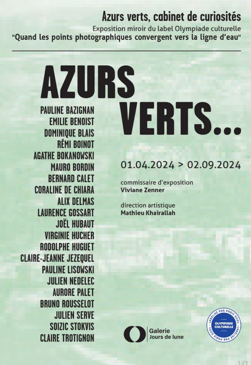 La galerie tient à rend compte de la pluralité des regards de ses artistes incluant l’eau dans leurs préoccupations. Loin d’une approche trop théorique, c’ est par le prisme de chacune de leurs propositions que peut se révéler la perspective d’un azur, d’azurs verts.