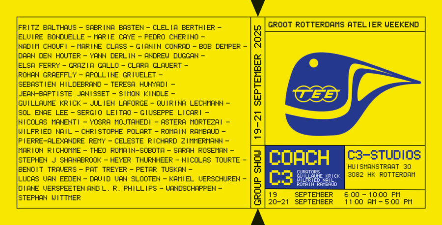 Fritz Balthaus – Sabrina Basten – Clelia Bertier – Elvire Bonduelle – Marie Caye – Pedro Cherino – Nadim Choufi – Marine Class – Gianin Conrad – Bob Demper – Daan den Houter – Yann Derlin – Andrew Duggan – Elsa Ferry – Grazia Gallo – Clara Glauert – Rohan Graeffly – Apolline Grivelet – Sebastien Hildebrand – Teresa Hunyadi – Jean-Baptiste Janisset – Simon Kindle – Guillaume Krick – Julien Laforge – Quirina Lechmann – Sol Enae Lee – Sergio Leitao – Giuseppe Licari – Nicolas Manenti – Yosra Mojtahedi – Astera Mortezai – Wilfried Nail – Christophe Polart – Romain Rambaud – Pierre-Alexandre Remy – Celeste Richard Zimmermann – Marion Richomme – Theo Romain-Sobota – Sarah Roseman – Stephen j Shanabrook – Heyer Thurnheer – Nicolas Tourte – Benoit Travers – Pat Treyer – Petar Tuskan – Lucas van Eeden – David van Slooten – Kamiel Verschuren – Diane Verspeeten and L. R. Phillips – Wandschappen –
