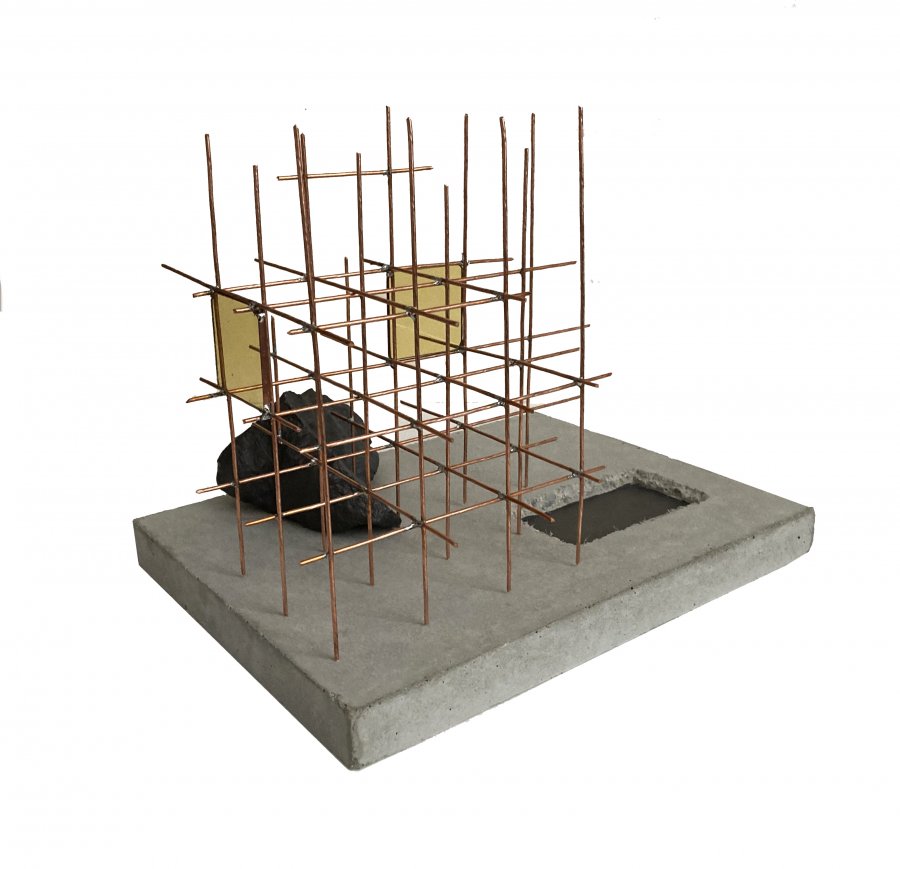 Si certains ont assimilé Bernard Calet à une sorte de moissonneur glanant dans le réel matière à production, ils oublient combien tout se joue ensuite dans l’espace de l’atelier puis dans un troisième temps dans le lieu d’exposition considéré comme la cristallisation d’un contexte. L’exposition dans la Galerie 8 + 4 ne fait pas exception à la règle et introduit même ouvertement une dérision joyeuse sur notre temps. Impact de réel (2022) reprend la forme des palettes moulées en aggloméré mais reproduites à une échelle réduite. Elles se métamorphosent en modules permettant de composer à l’infini des propositions d’architecture. Sur ces porcelaines mates, des impacts en forme de cratères sont recouvertes de platine, soulignant la dimension aléatoire de ces formes. Par ce geste iconoclaste, créer des perturbations à l’esthétique parfaite, Bernard Calet introduit la possibilité d’une double lecture. Si comme il l’affirme « Les impacts font rupture, sont fragmentés par le bruit du réel », l’objet final rejoint par la perfection de sa fabrication la cohorte des produits estampillés pour un marché du luxe. De la palette au jeu de construction, d’une forme issue du monde ouvrier à la somptuosité d’un produit du design contemporain, le raffinement du déplacement ne peut que surprendre le spectateur. Enfin, la série de sculptures Connections réintroduit dans le parcours de l’exposition la présence de l’architecture comme archétype d’un rapport du corps humain avec le réel. Pour Bernard Calet, l’architecture doit se lire comme un écran, à la fois enveloppe protectrice mais aussi surface propre à recevoir toutes les images (voir même à faire image). Dans ces maquettes qui tiennent plus de la sculpture ou de la proposition pour quelques monuments incertains de l’espace urbain, l’utopie moderniste y est niée. Ce qu’il expose est une perte de repère et une abolition des principes normatifs de l’architecture. L’œuvre n’est plus qu’une trame vide. L’humain y est exclu et le territoire réduit à un socle générique. Mais tout l’art de Bernard Calet n’est-il pas un art du nomadisme au sein d’une géographie culturelle mondialisé, un art ou les savoirs subalternes sont soudain réinventés dans l’espace cerveau de l’atelier puis dans l’espace de monstration ? Ici le simple cube blanc d’une galerie y est devenu un lieu d’énonciation d’une forme de résistance à la fois poétique et humoristique.