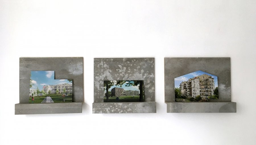 Bernard Calet n’est pas architecte mais, depuis bientôt trente ans, il questionne les différentes échelles de l’espace construit, de l’urbanisme à la maison individuelle, en passant par la notion de paysage. Un simple clic sur son site permet de se rendre de compte à quel point l’architecture hante l’artiste tourangeau. Cela tombe bien, depuis quarante ans, la ville d’Ivry-sur-Seine valorise l’art public. Dernièrement, sous la houlette de Hedi Saidi, directeur de la Galerie Fernand Léger, une Triennale Art Public permet à dix artistes de réfléchir à une intervention autour de différentes thématiques telles « Les berges de Seine », « Les cheminées industrielles », « Les espaces architecturaux de Renée Gailhoustet et Jean Renaudie », « L’interaction avec les habitant.e.s », et « Les socles, sur le territoire d’Ivry-sur- Seine » (Rendez-vous en septembre 2023, dans la Galerie pour découvrir les propositions de la troisième du nom).