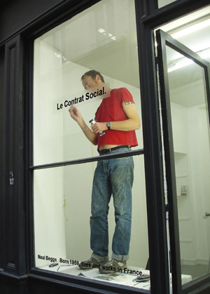 Atypique, frondeuse, l’œuvre cultive l’art de la modification, avec une grande exigence certes mais toujours avec le souci de préserver la part d’étonnement contenue dans chaque nouvelle proposition. En effet avec Neal Beggs, admettons une belle fois pour toutes qu’une exposition c’est toujours le lieu d’un cheminement, d’une oscillation. Et si l’escalade fut et reste une clé possible pour aborder la singularité d’une telle démarche, elle ne doit pas trop ostensiblement être la seule. D’ailleurs l’artiste aura tôt fait de nous emmener ailleurs, aux confins du langage par exemple, ou encore en questionnant l’histoire, traversant avec une égale souplesse les genres, les catégories, convoquant la sculpture, les mots, les actualités, la musique, les gestes…