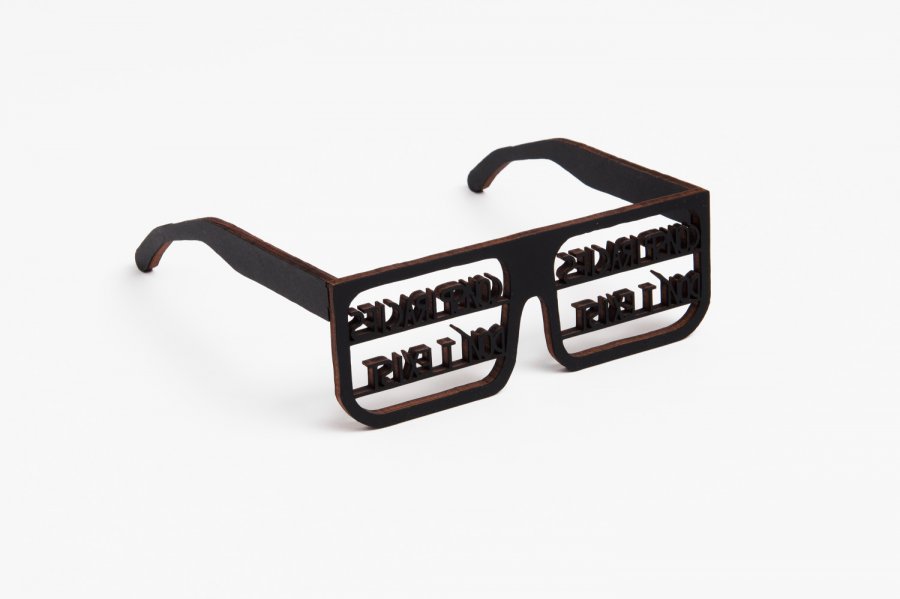 rend hommage à They Live (Invasion Los Angeles) de John Carpenter. Sorti en 1988, le film met en scène une paire de lunettes qui permet de voir le monde tel qu’il est vraiment, tandis que les extraterrestres dominent la population grâce à des messages subliminaux qu’ils répandent dans les publicités, les magazines, à la télévision… Olivier Garraud se réapproprie cette critique violente des années Reagan, et questionne son actualité à l’ère du soupçon. En 2018, aurions-nous encore besoin de lunettes dénonçant les conspirations ?