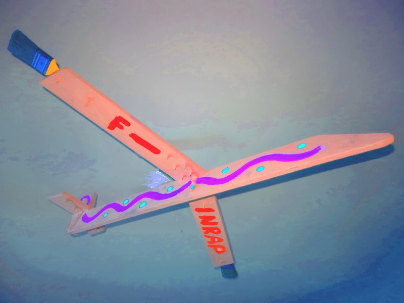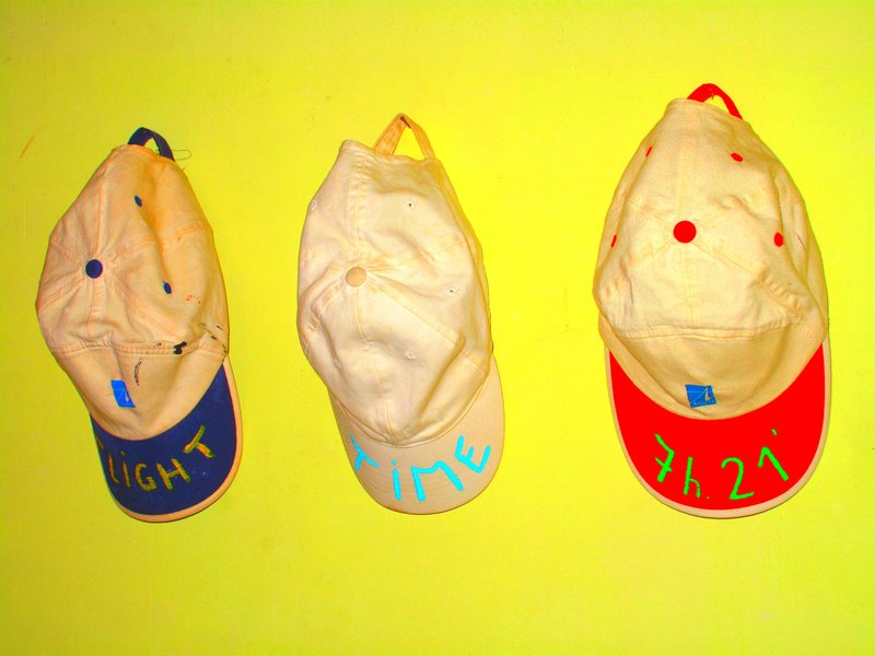 Au retour de chaque vol, les objets sont sortis de l’avion, et leurs nouveaux temps de vol respectifs notés. Sur quelques objets choisis on ne sait pourquoi, dans un rituel qui lui appartient, de toutes les couleurs de l’arc-en-ciel, Philippe Thomassin peint alors sur chaque objet choisi le temps de vol qui lui est propre, son temps de flottement artistique, son anachronisme, le tout accompagné d’ornements. Par ce rituel, ce geste pictural hybride, sol-air, sans technicité, voilà cet objet transformé en : Météo-Rite.