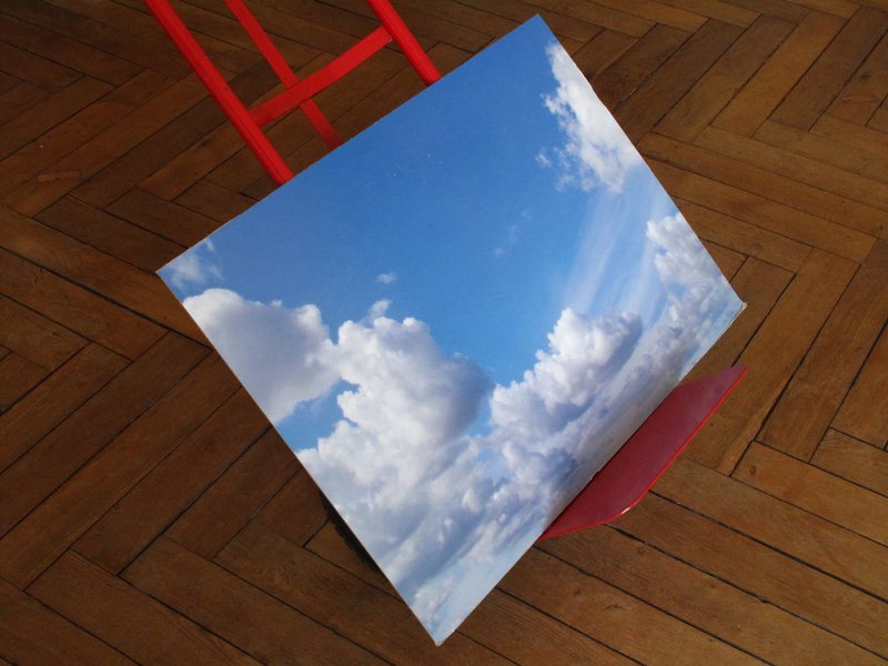 Qu’il soit nuageux ou serein, sombre ou lumineux, etc., presque tous les jours, ausitôt levé, Philippe Thomassin photographie le ciel, puis l’examine, le photographiant à nouveau avant le crépuscule, tel qu’il s’expose à nous, triste ou joyeux, toujours beau. Le ciel seul, cette matière intouchable et magique en éternelle évolution, faisant de nous de perpétuels prévisionnistes, parfois jusqu’à l’absurde, voulant connaître seulement au-dessus de nos têtes, l’état du ciel à court terme. Depuis plus de dix ans, plusieurs fois par jour, où qu’il soit, Philippe Thomassin photographie l’éther sans jamais être saoûl, amalgamant consciemment passé présent et futur tel un climatologue. Il est un explorateur ailé, peintre, photogaphe, vidéaste. Re Voir le ciel vu de la Terre. Re Voir le ciel vu du ciel. Re Peindre & Re Photographier les cieux vus du ciel. Du ciel, Re Voir notre humanité.