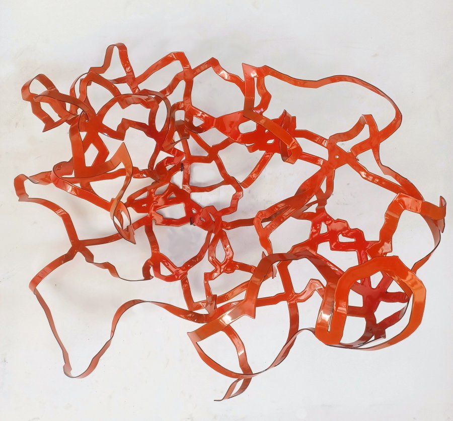 Son élaboration et sa construction ont aussi procédé de la sorte. Pierre-Alexandre Remy insiste sur ce temps d’atelier où le modelage – c’est le terme qu’il emploie – se fait au gré de la recherche, du travail, des aléas et des découvertes et non selon un plan préétabli auquel il suffirait de se conformer. Disposant d’une rouleuse, il a pu rouler – et parfois dé-rouler – à l’envi les lignes d’acier préalablement découpées pour les assouplir. On ne dira jamais assez l’importance de ce temps-là, un temps incompressible, celui de la gestation et du repentir, celui qui laisse toute sa part à l’accident, à l’imprévu, au non-programmé. C’est ce temps qui fait la qualité d’une oeuvre comme probablement la saveur d’un mets.