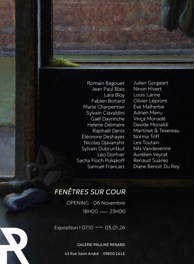 Ouvrir un lieu, c’est d’abord ouvrir un seuil. Non pas simplement une porte ou une vitrine, mais un espace mental, un temps suspendu. Fenêtres sur cours, exposition inaugurale de la Galerie Pauline Renard, se place précisément là : à l’instant où le regard bascule, où le visible commence à faire signe, où l’on ne voit pas encore tout, mais déjà quelque chose s’entrevoit.