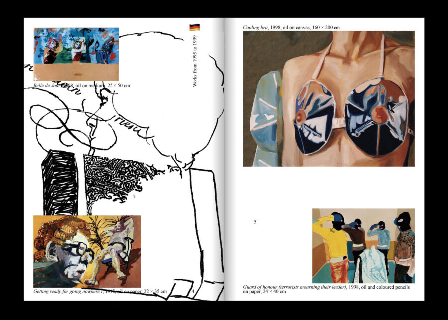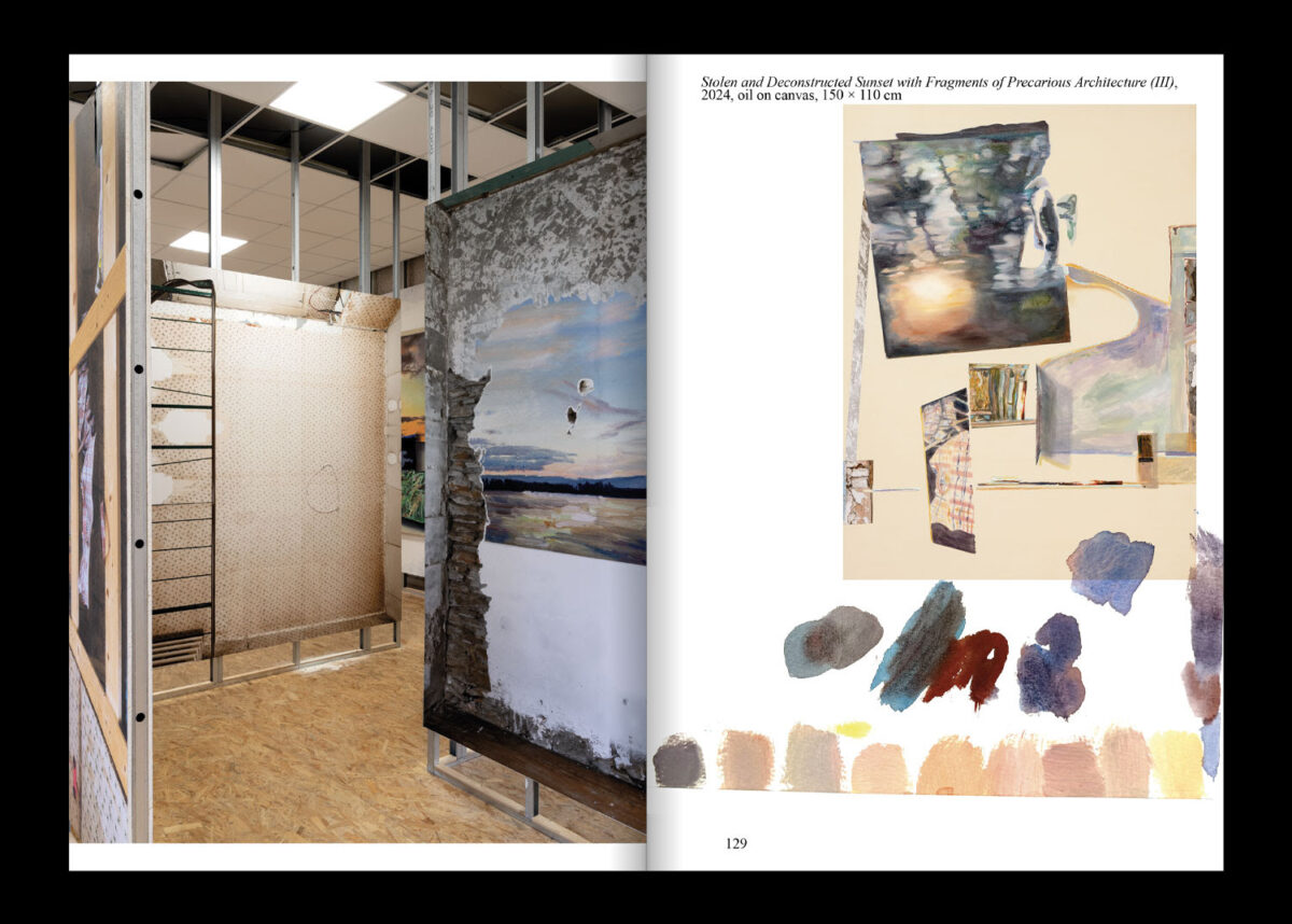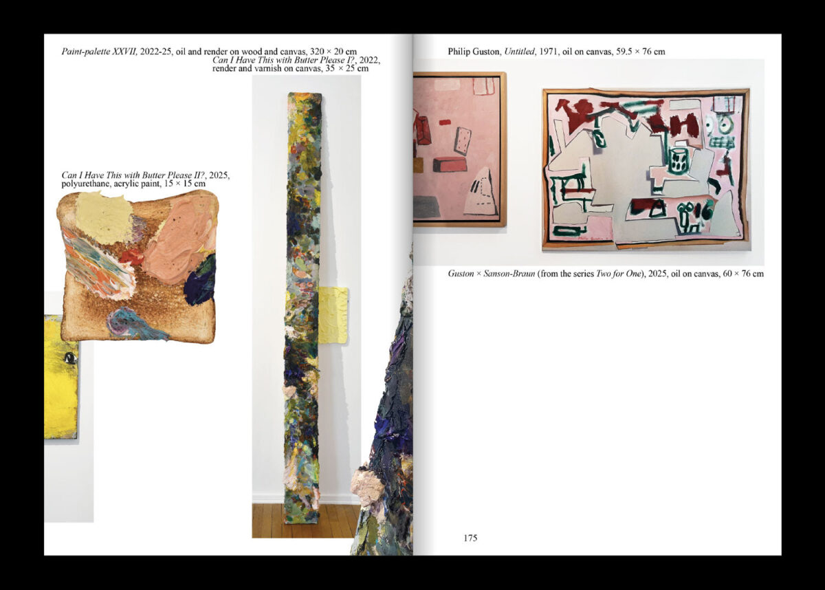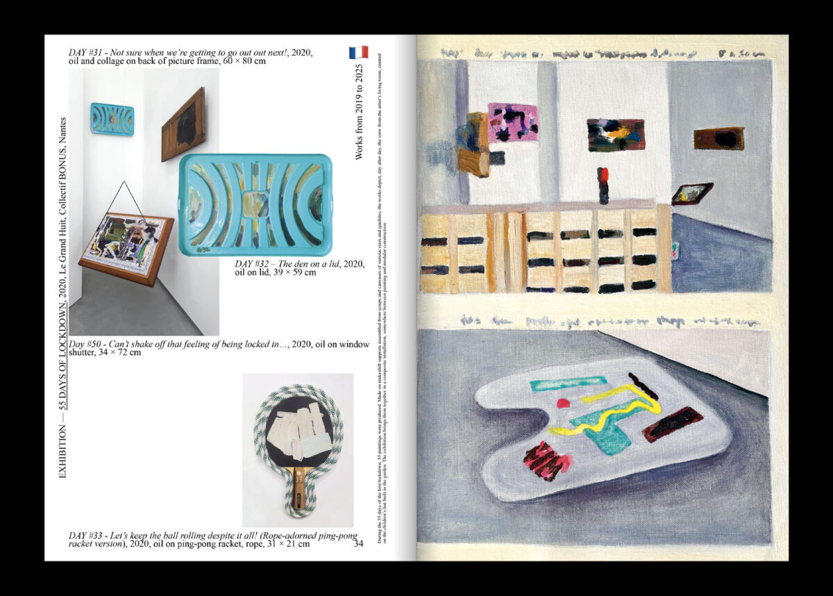 Cette première monographie retrace trente années de pratique artistique, depuis les débuts en Allemagne, en passant par vingt années à Londres, jusqu’aux projets plus récents en France. Elle réunit des reproductions, des vues d’expositions et des textes critiques, et présente également une série de seize peintures spécialement conçues pour l’occasion, imprimées sur un papier distinct. Telles des poupées russes, ces œuvres créent une mise en abyme de la fabrication du livre, diffractant son propre processus et brouillant la frontière entre documentation et œuvre. Le lancement et la signature auront lieu le samedi 22 novembre 2025, de 16h à 18h, à la librairie La Boutique du Lieu, au Musée d’arts de Nantes, suivis suivi d’un verre au Feu Bar à côté.
