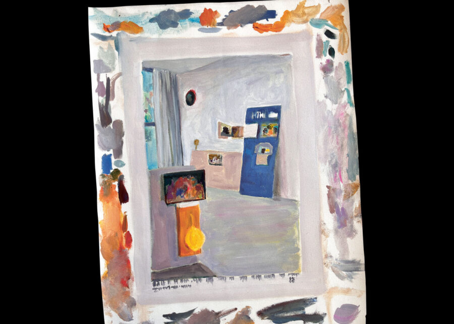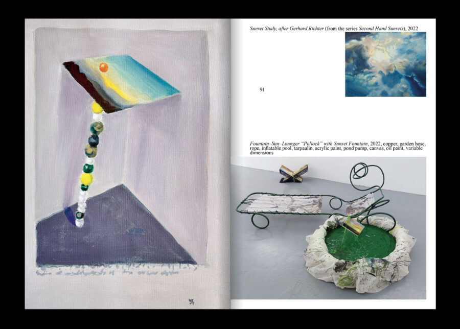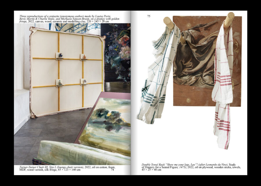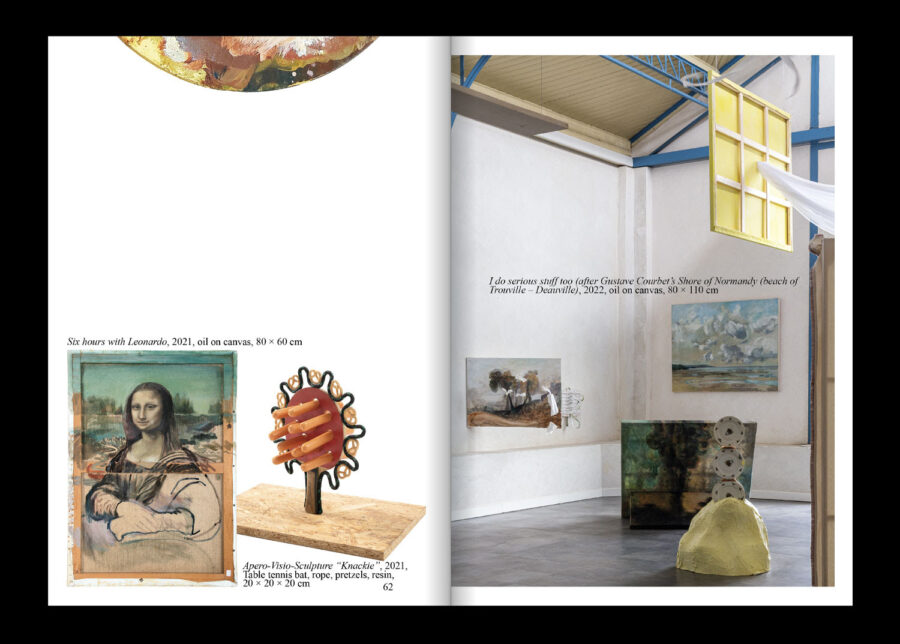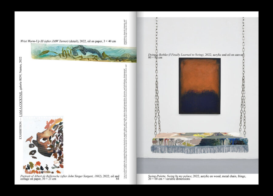 Michaela Sanson-Braun, «The Cocktail Principle», 2025, Peinture en huile d'une mise en page sur toile, The Cocktail Principle – monographie / monograph, photographie : Michaela Sanson-Braun