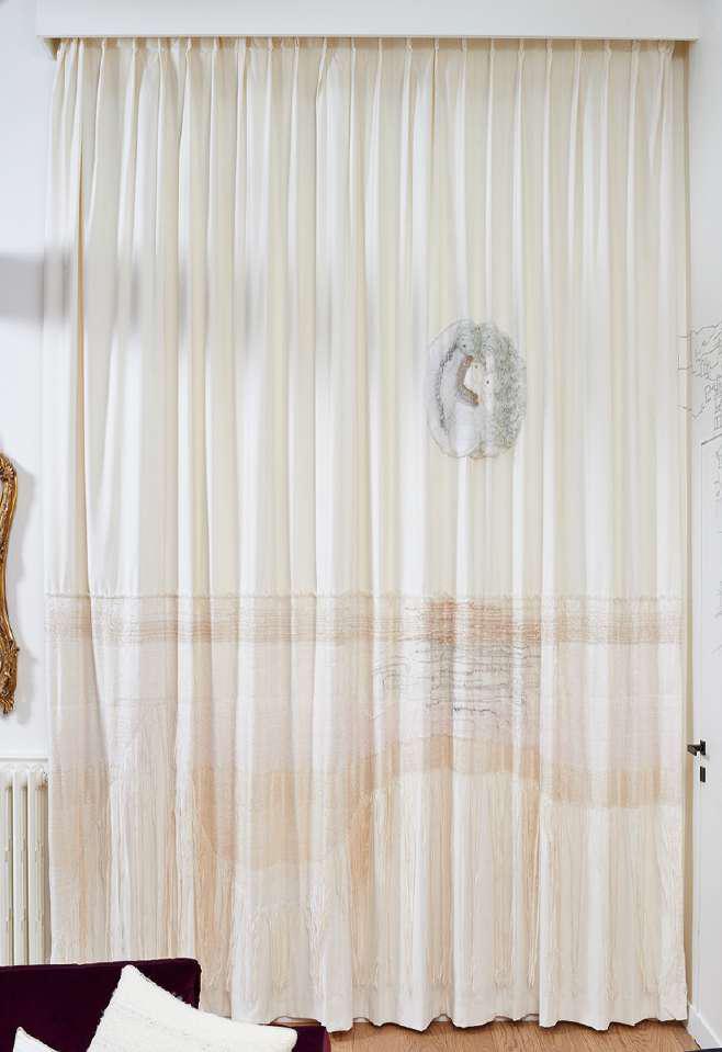 Issue d’un long parcours artistique textile, entre création, design, art contemporain ou encore métier d’art, Brigitte Guillet a toujours été portée et guidée par le fil et la matière. Ainsi, elle fait cohabiter les traditions ancestrales et l’innovation avec des matériaux techniques luminescents et réfléchissants. Ses œuvres se composent autour de la lumière, du reflet et de la transparence, avec pour médium de prédilection le tissage-main lequel induit un geste long et méticuleux.