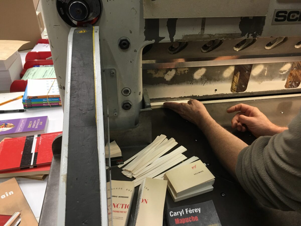 La folle entreprise engagée, s’en suit un laborieux travail de manutention et de coupe n’épargnant aucun titre, de l’imposant catalogue d’exposition à la mince revue, jusqu’à l’obtention d’un ensemble homogène de près de 2000 volumes présentant tous un même gabarit et une égalité de tons puisque les publications sont présentées sur leur tranche.
