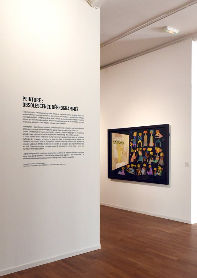 L’exposition Peinture : obsolescence déprogrammée est centrée sur le devenir de la peinture à l’ère du numérique. Elle donne à voir et à penser l’évolution du medium pictural et son renouvellement au contact des nouvelles technologies. L’omniprésence des écrans et l’intrusion des algorithmes dans presque tous les aspects de la vie quotidienne, aussi récentes que fulgurantes, ont pour conséquence une évolution du regard que certains peintres s’attachent à traduire dans leurs œuvres.