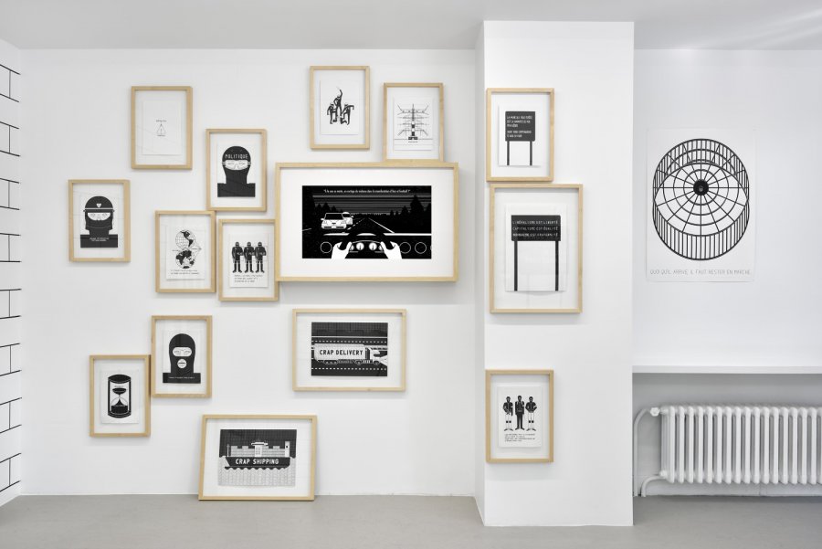 Un des tropismes de notre époque réside en un usage sans tri d’internet, comme lieu de la parole publique, que cette dernière soit convoquée, commentée, déléguée, illustrée, ou source d’un savoir chimérique, mais aussi comme moteur de situations participatives pour l’individu, quel qu’il soit dans ce système horizontal. Invité au commentaire permanent, le quidam peut s’inventer sa propre légitimité, une autorité réelle ou fictive, entrer dans l’écriture de cette vaste parabole d’opinions. Le dessin est ainsi envisagé tel un motif (dans les deux sens du terme). Si le simulacre désigne une apparence qui ne renvoie à aucune réalité sous-jacente, au sens du terme grec d’eidolôn (l’image au sens de l’idole), il s’oppose à l’icône (eikôn, au sens de l’image reproduite), que l’on peut traduire par copie. La copie renvoie à l’imitation du réel, sans dissimulation. Tandis que la simulation remet elle en cause la différence du vrai et du faux, du réel et de l’imaginaire. « Le simulacre est vrai » nous dit Baudrillard : « le secret des grands politiques fut de savoir que le pouvoir n’existe pas. Qu’il n’est qu’un espace perspectif de simulation, comme le fut celui, pictural, de la Renaissance. » Convoquant une écologie riche d’autorités économiques (slogans) comme politiques (paraboles) les dessins viennent activer, telles des énoncés performatifs, une pensée dans sa mobilité. Celui qui les regarde peut prendre part à la réflexion et, ce faisant, déplacer la question de la passivité sur le terrain de l’esthétique.