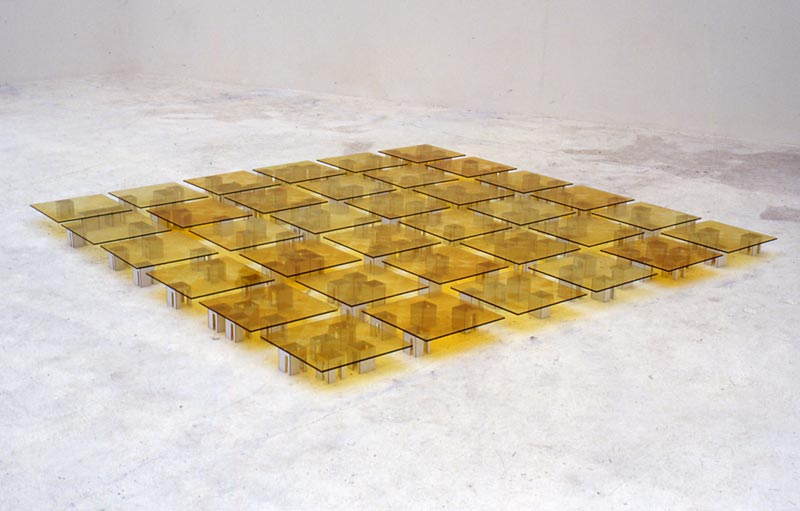 Bernard Calet, «Élévation II», 1994, glass, "silver yellow", cardboard, FRAC Centre, Orléans, photographie : © Bernard Calet