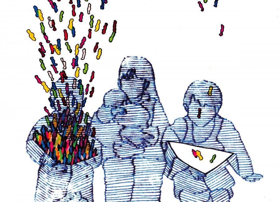 La famille est comme un fil, une trame qui lie et relie sans jamais se rompre. Comme des strates qui se superposent au fil du temps pour se solidariser. Comme un roc, une roche. Et pourtant l’image est brouillée, le vide est palpable. Tous emmêlés et tous indifférents, tous embrouillés et absents. Effacés dans l’invisible et le silence, sourds à la blessure qui se répand. Le fil est un serpent qui tue et nous efface au fil du temps.