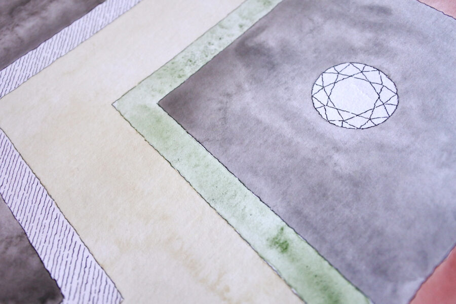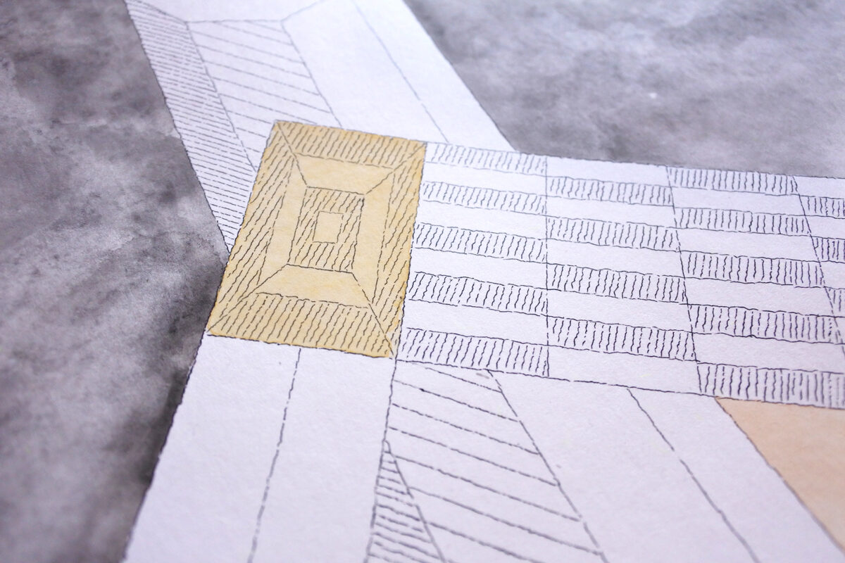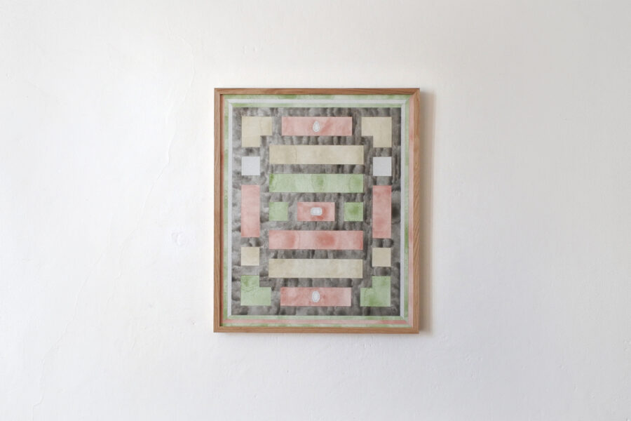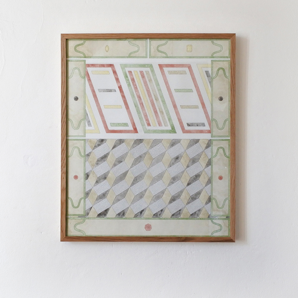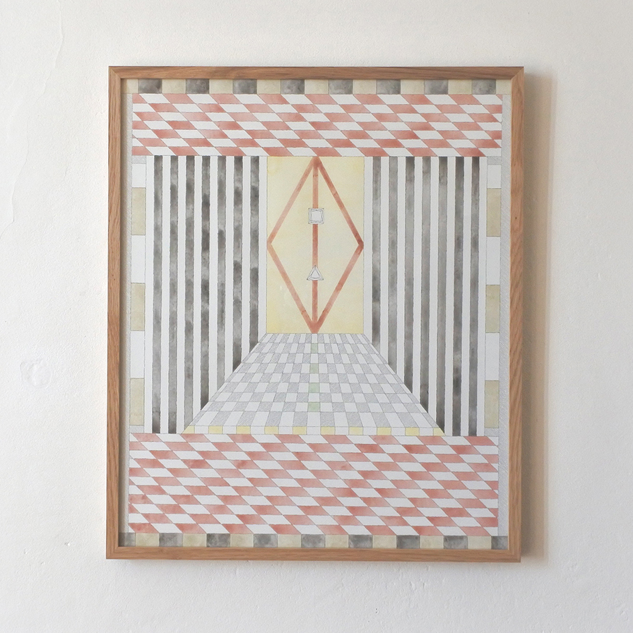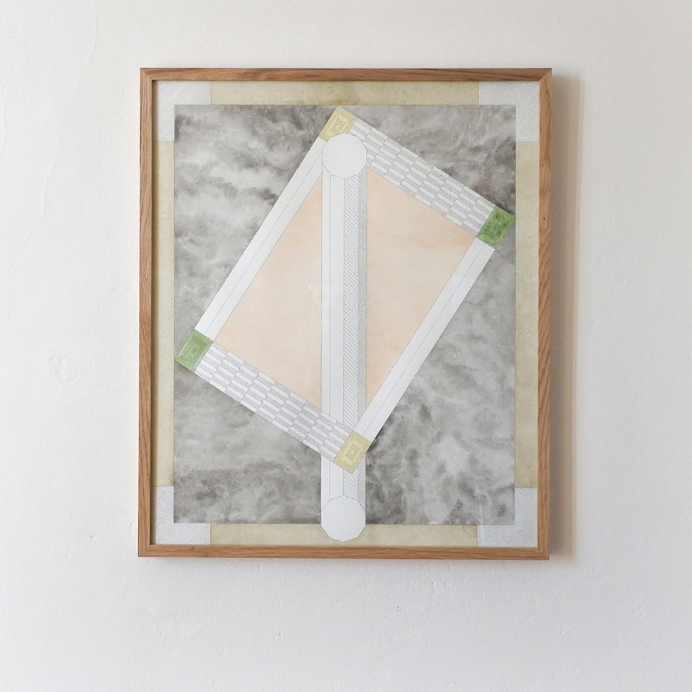 Encre de Chine et gouache sur papier. Cadre en chêne 49 × 60 cm