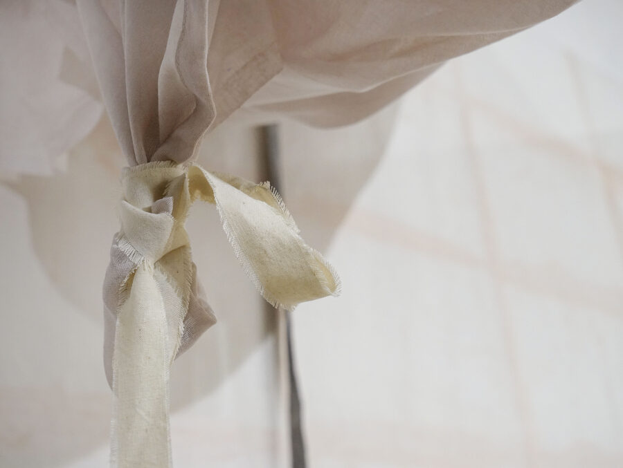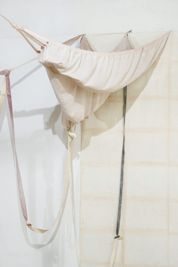 «Cette semaine, j’ai rencontré des voiles de candeur. Sur le thème du cocon et de la mutation, j’ai voyagé dans des petits bouts d’enfance noués les uns aux autres.