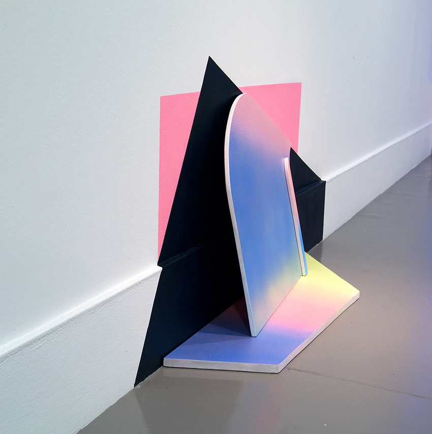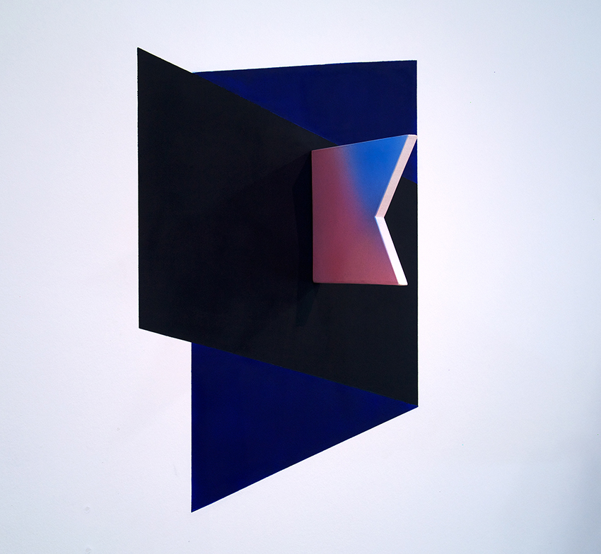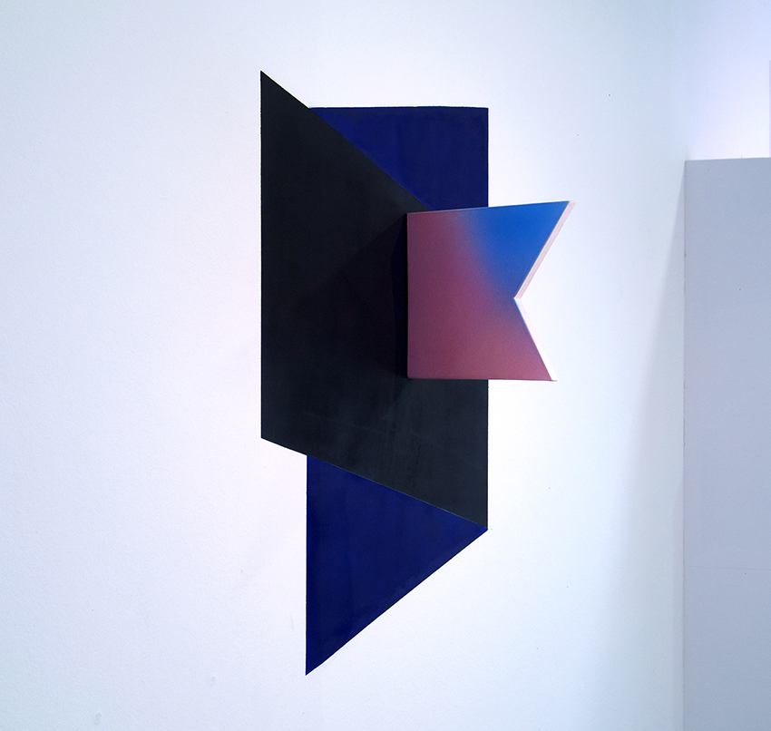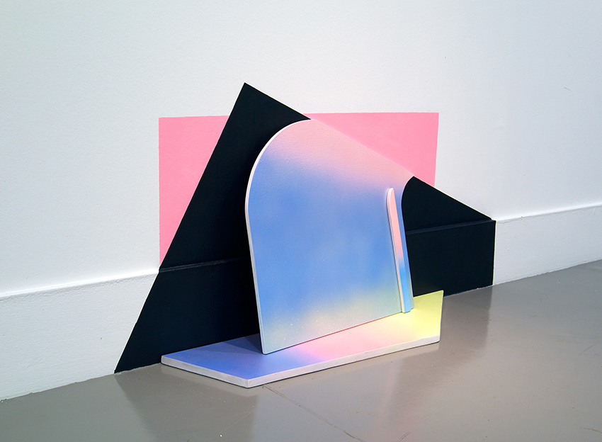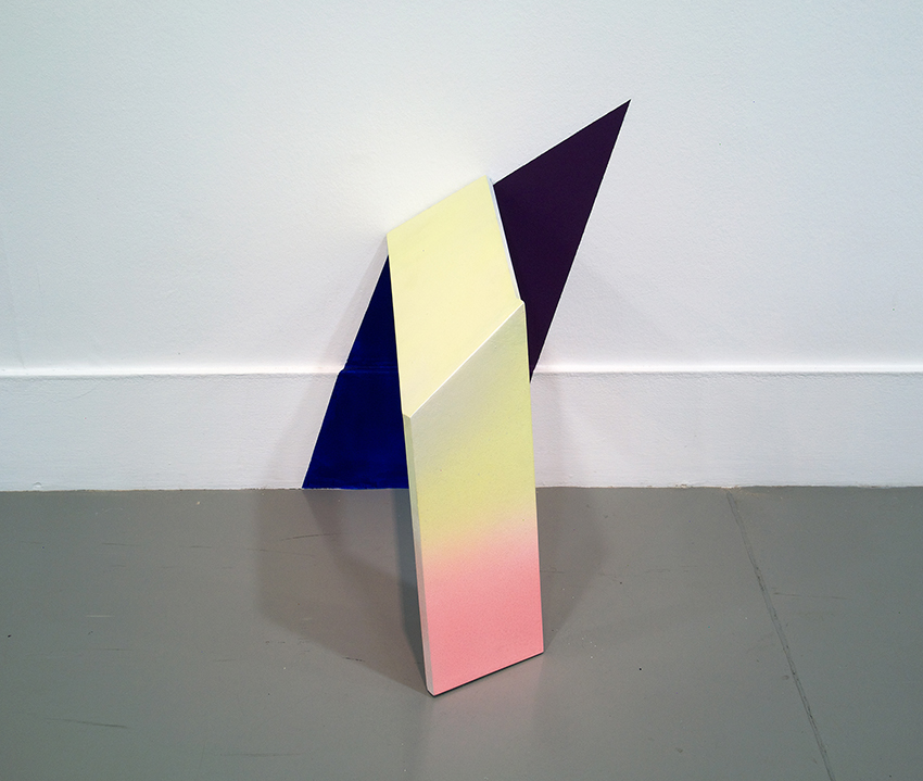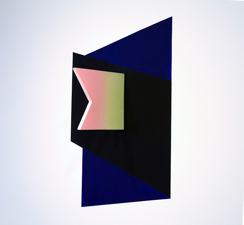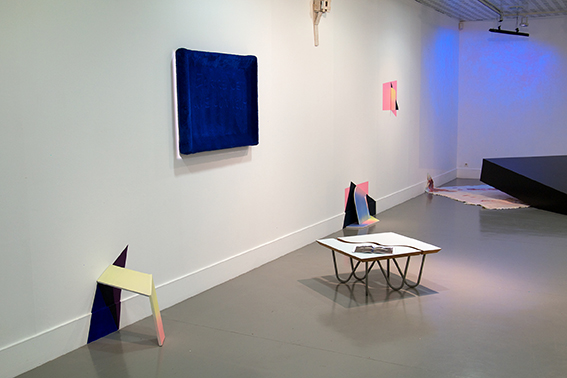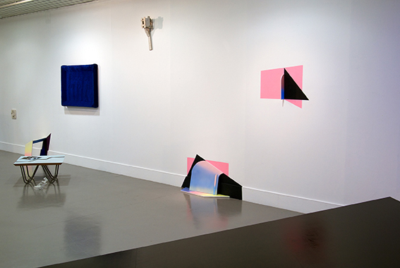 Vues de l’exposition collective et restitution de résidence A.R.T.F (Almost Ready To Fly), sur une invitation de la Galerie Leonard de Vinci, de l’ENAC, avec Sophie Baquié, Laurence Broydé, Laura Freeth, Béatrice Utrilla – en partenariat avec Les Abattoirs FRAC Occitanie – Les OPENS SPACES, formes en bois peintes complétées par des wall paintings, entre volume et peintures dans un glissement ambigu des médiums, évoquent les illusions sensorielles et optiques susceptibles de survenir pendant le vol des pilotes.