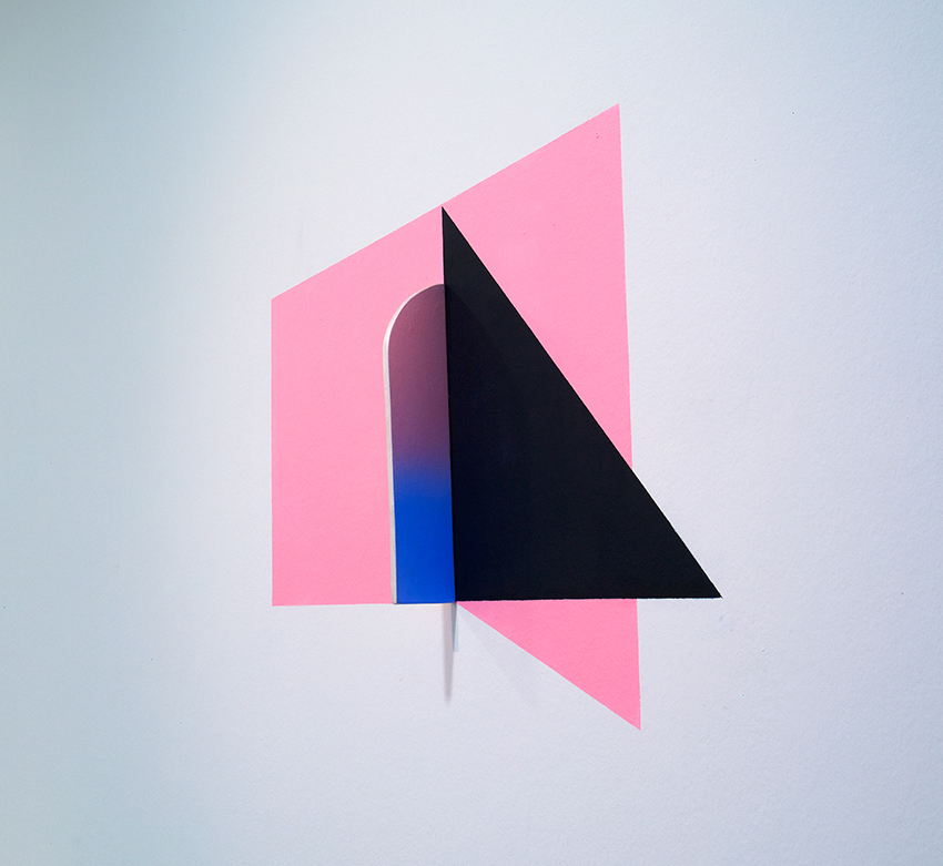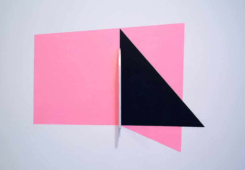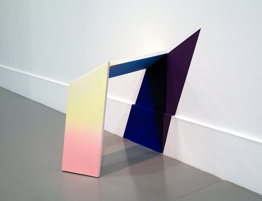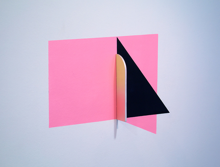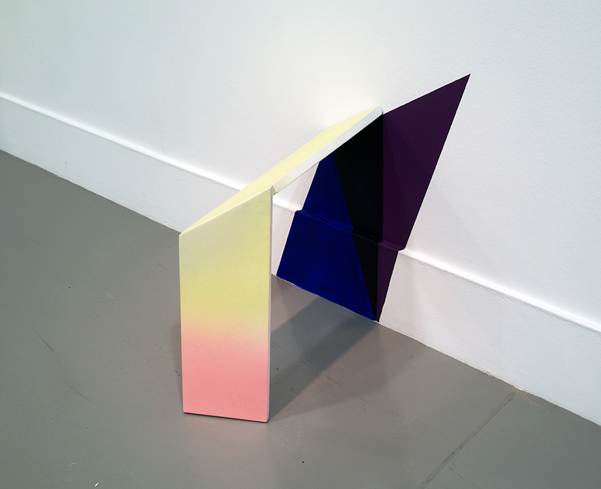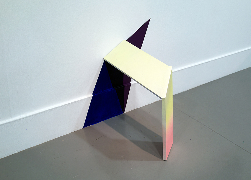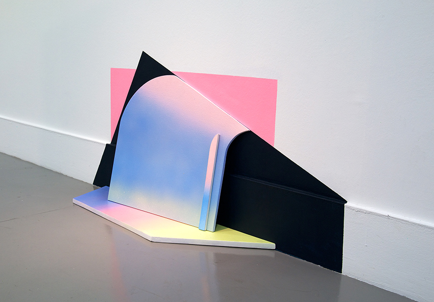 Vues de l’exposition collective et restitution de résidence A.R.T.F (Almost Ready To Fly), sur une invitation de la Galerie Leonard de Vinci, de l’ENAC, avec Sophie Baquié, Laurence Broydé, Laura Freeth, Béatrice Utrilla – en partenariat avec Les Abattoirs FRAC Occitanie – Les OPENS SPACES, formes en bois peintes complétées par des wall paintings, entre volume et peintures dans un glissement ambigu des médiums, évoquent les illusions sensorielles et optiques susceptibles de survenir pendant le vol des pilotes.