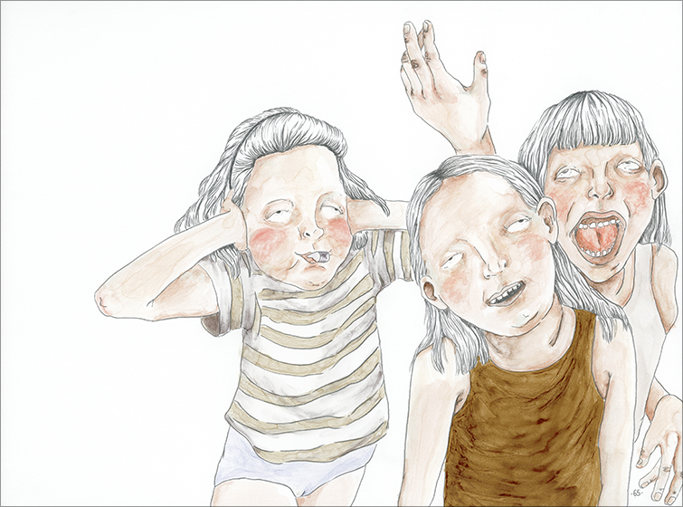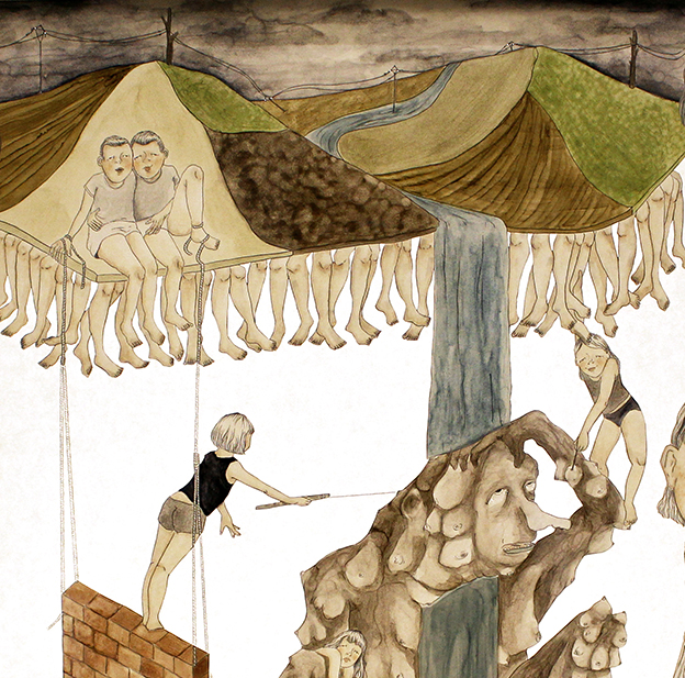 10 dessins, 30 x 40 cm, feutre et graphite sur papier de pierre