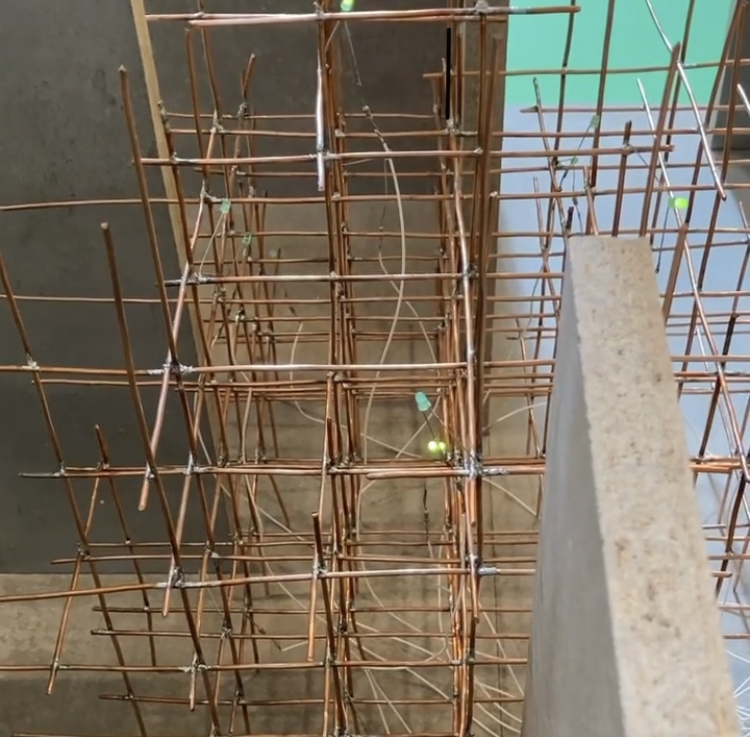 viroc, cuivre, leds, Arduino, fusain, contrepalqué, vert incrustation 140 × 170 × 120 cm