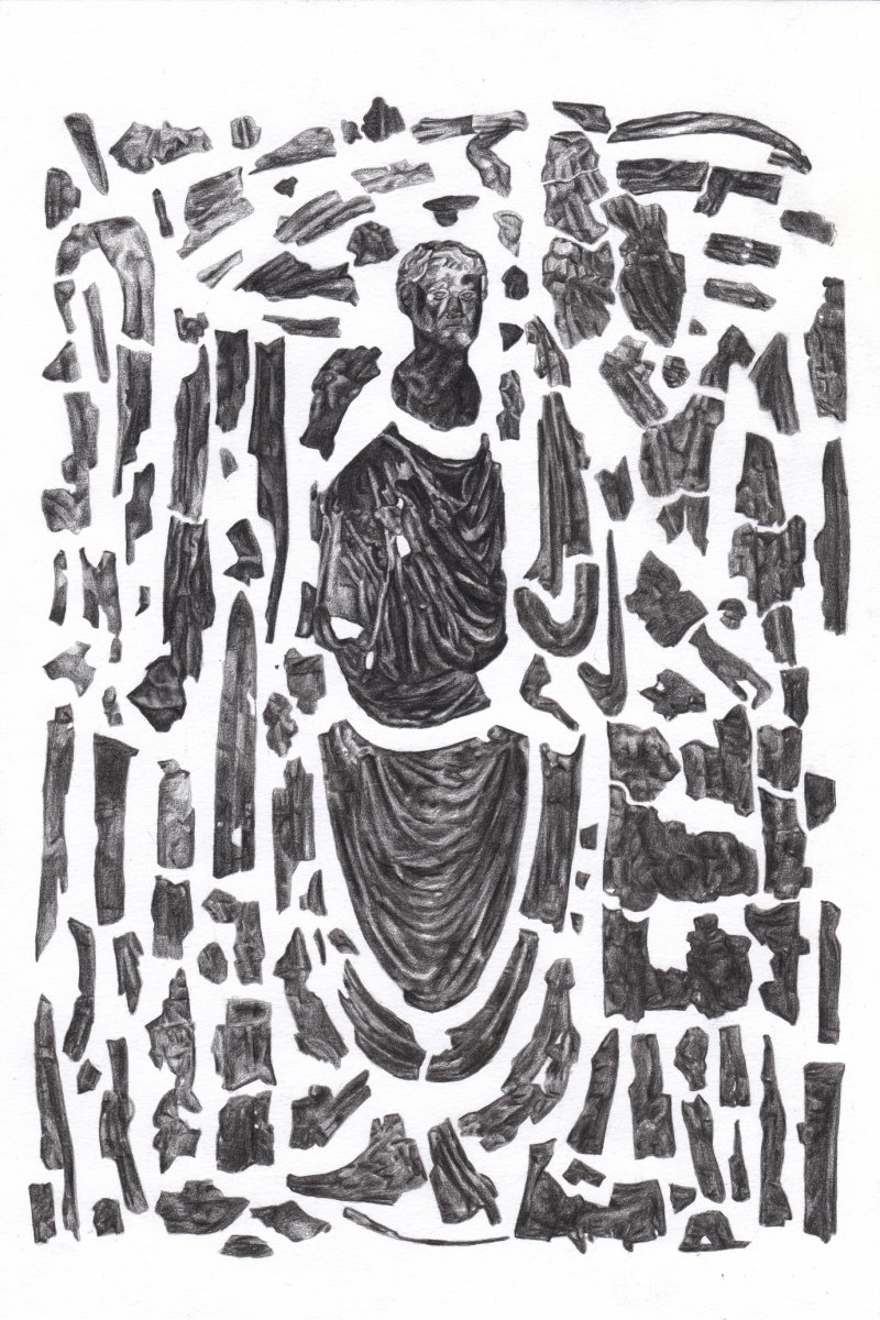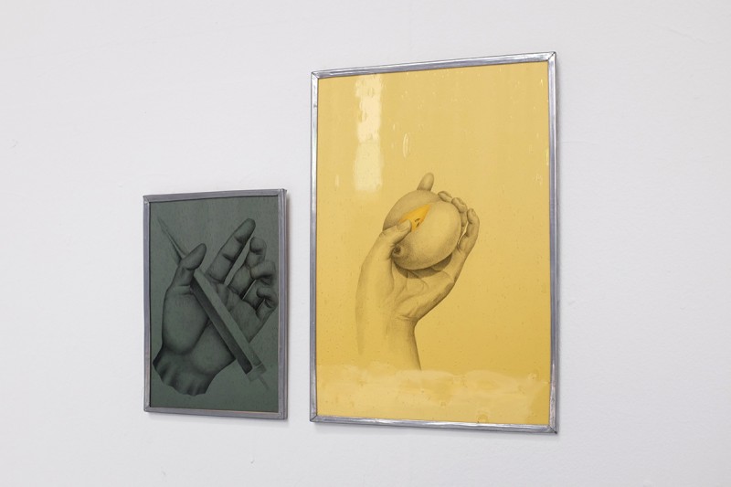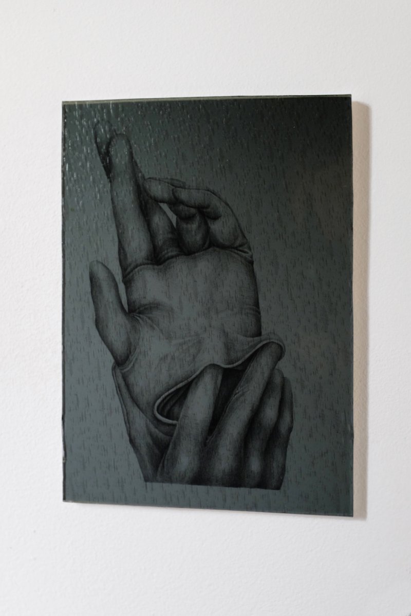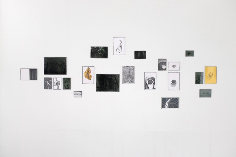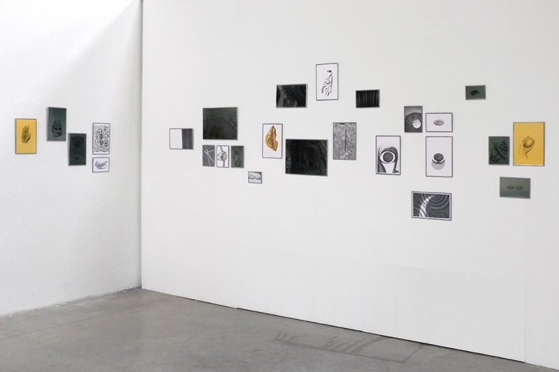 Dessins, verres et verres soufflé de couleur, dimensions variables (entre 14x20cm et 30x40cm)