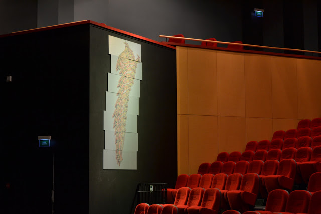 Au bord du battement est une installation qui se devellope à la fois dans le hall de l’Echiquier sous forme sonore et dans le théâtre auditorium sous forme picturale. Ce projet est né d’une résidence de création dans l’enceinte du centre culturel de l’Echiquier, d’octobre à décembre 2019.