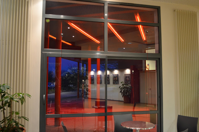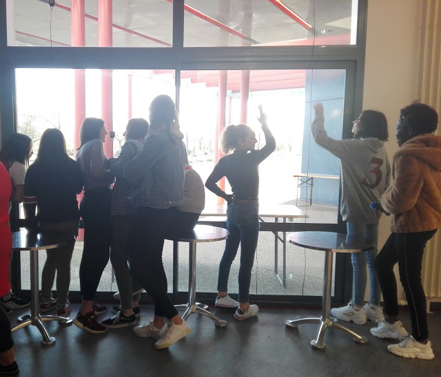 Le son diffusé par les 10 hauts parleurs sur les surfaces vitrées du hall, projette une lecture du lieu.