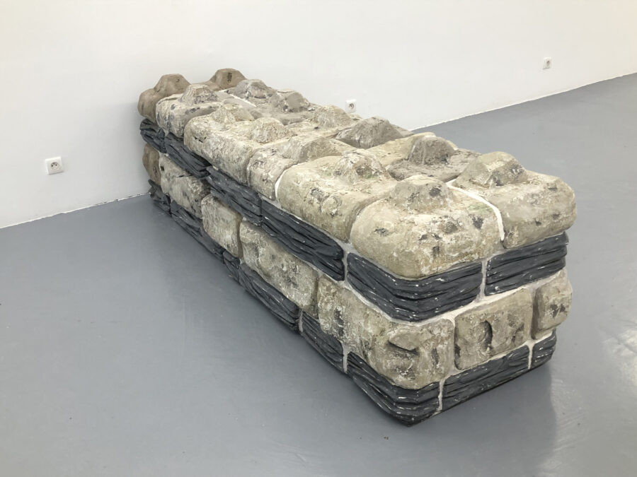 Ces blocs anti-intrusion font écho à la forteresse. Ils sont là pour nous protéger. On en voit beaucoup depuis les attentats. Mais ces blocs sont souvent aussi installés contre les gens du voyage, pour bloquer des stationnements. L’abondance de ces blocs en ville, de plus en plus visibles, qui modifient les circulations et les paysages urbains m’a donné envie d’en reproduire et de les réaliser à l’échelle une.
