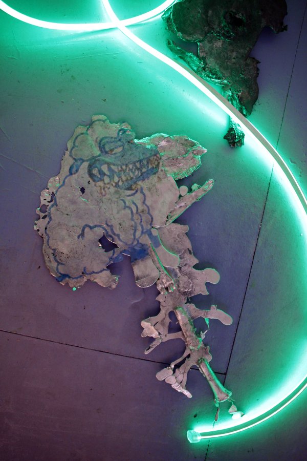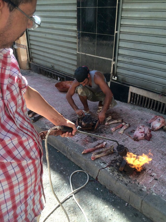 Dans le projet Bouzelouf d’Offrande, l’artiste documente son expérience d’une grande fête de sacrifices : la célébration de l‘Aïd El-Kébir, commune pour les traditions musulmane et judéo-chrétienne. La fête fait référence au sacrifice originaire d’Ibrahim (ou Abraham dans la religion juive) qui, afin d’accomplir l’ordre de Dieu, aurait dû égorger son fils Ismaël (ou Isaac) ; cependant au moment X ce dernier avait été remplacé par un mouton (ou un agneau). Dans la tradition musulmane, on égorge désormais un mouton pour que ce sacrifice, transformé en une fête publique, permette, d’une part, une glorification de Dieu et d’autre part, un moment unique de partage et de convivialité qui réunit le peuple, car ce mouton égorgé est ensuite cuisiné et partagé entre les familles. L’œuvre documente les étapes de la cérémonie religieuse et présente également les répliques des os de mouton égorgés, ramassés par l’artiste et ensuite moulés afin de permettre au spectateur de témoigner le rituel et d’en faire partie.