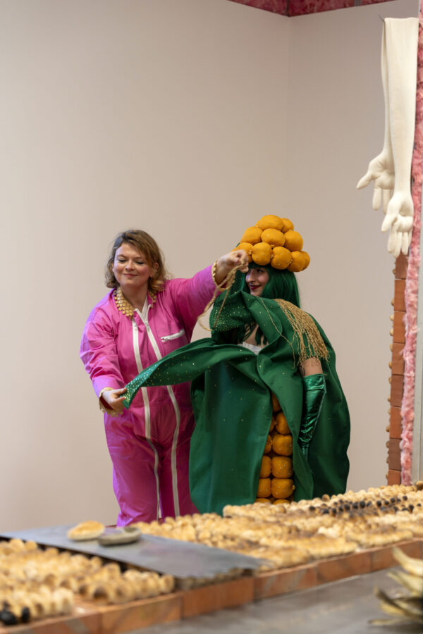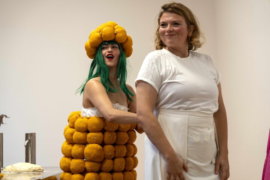 Dans cette performance, Clélia Berthier devient tour à tour agricultrice, cuisinière et serveuse pour proposer au public de déguster ce mets, interprété par Meg Boury. L’épi de maïs est alors effeuillé avec malice avant de passer à la casserole. À la bougie ou sur la braise, à chaque exposition son mode de cuisson, mais la métamorphose s’opère toujours : le maïs éclate. Alors la chaleur monte et pour se protéger, la serveuse enfile sa manique, assaisonne le pop corn encore chaud avant de l’offrir à son public.