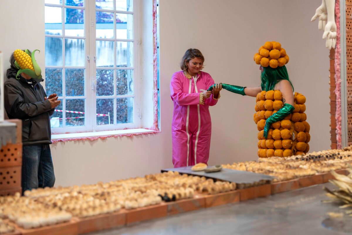 Dans cette performance, Clélia Berthier devient tour à tour agricultrice, cuisinière et serveuse pour proposer au public de déguster ce mets, interprété par Meg Boury. L’épi de maïs est alors effeuillé avec malice avant de passer à la casserole. À la bougie ou sur la braise, à chaque exposition son mode de cuisson, mais la métamorphose s’opère toujours : le maïs éclate. Alors la chaleur monte et pour se protéger, la serveuse enfile sa manique, assaisonne le pop corn encore chaud avant de l’offrir à son public.