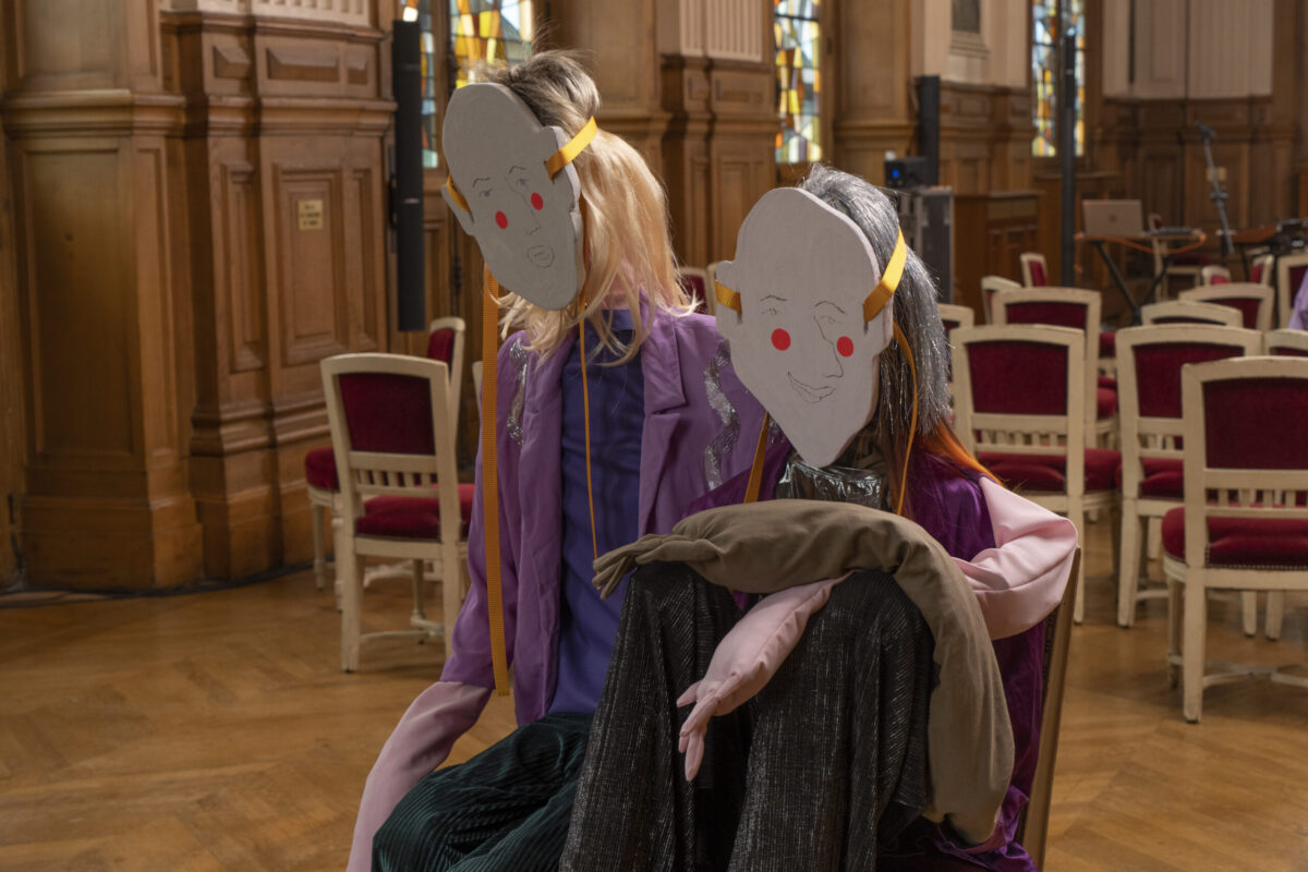 Pour la Nuit Blanche des enfants, Louise Porte a composé plusieurs mises en situation. Chaque scène représente une histoire, faisant écho à la programmation de La nuit blanche, entre acrobaties, histoires contées, scènes carnavalesques et rencontres.