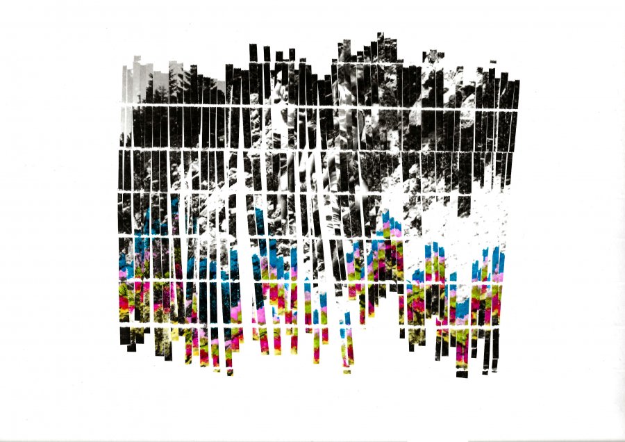 Morcelée, broyée, la matière photographique se transforme, s’organise et se désorganise dans l’espace. Les corps disparaissent et se confondent avec le paysage minéral et végétal. Le vide entoure, le vide sépare, le vide efface. L’image de la cabane renvoie à l’organisation précaire du foyer familial et à ses fondations prêtes à s’effondrer à tout moment.