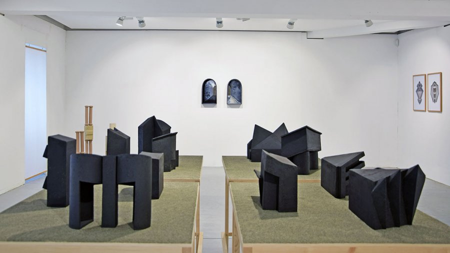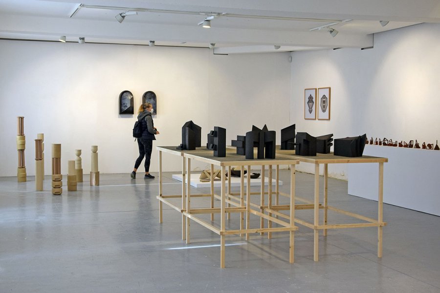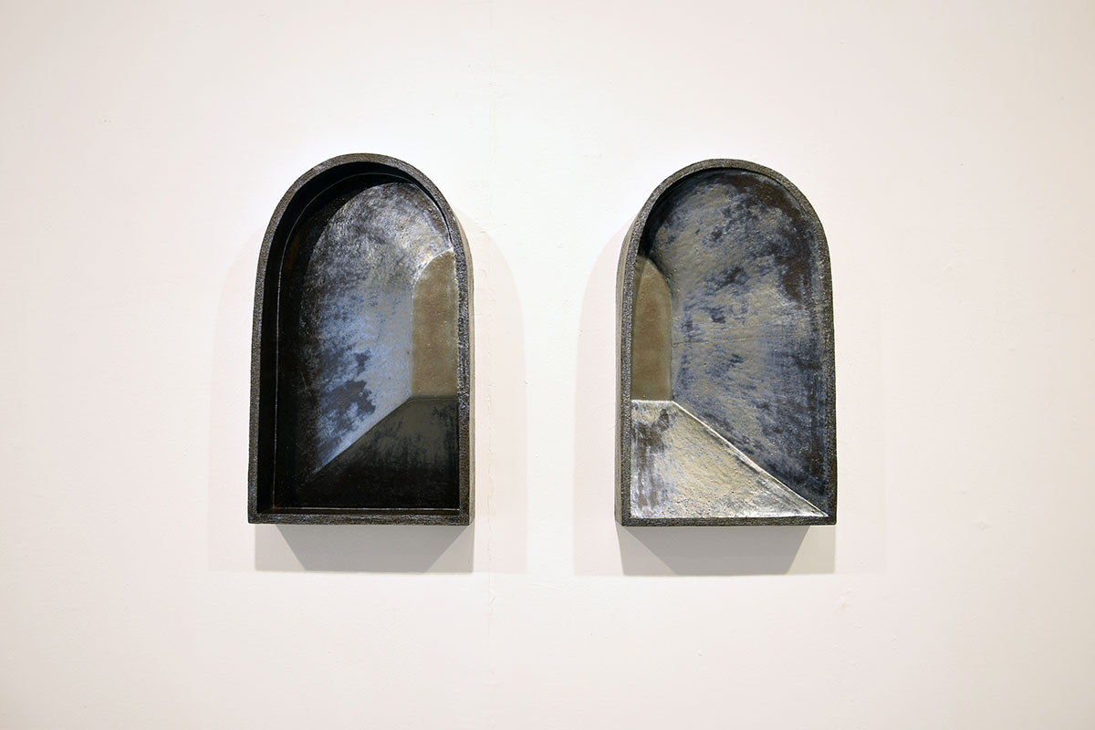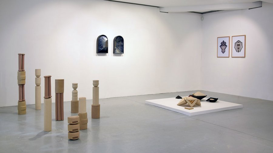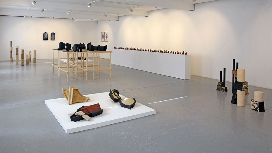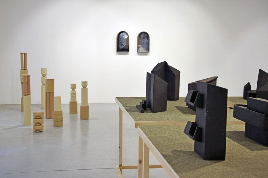 Les Architecture sédimentaires dans lesquelles on retrouve des colonnes, articulent formes brutes éclatées, matiéristes et formes lisses, travaillées, dans des élévations qui évoquent des fragments d’architecture. Le poids suggéré des matériaux faisant ressentir pleinement la magie de leur équilibre.