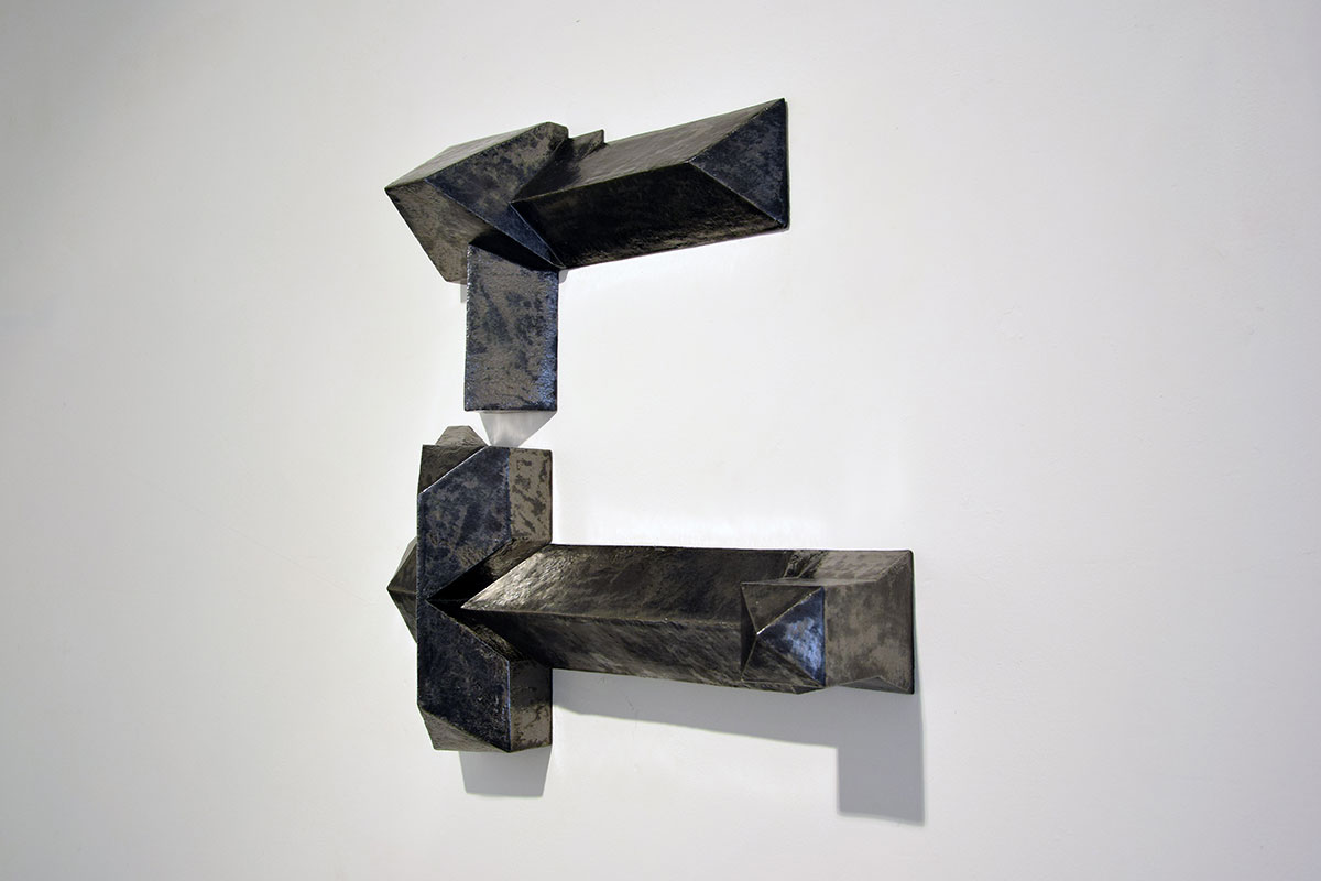 En irisant d’un émail argenté la céramique des volumes dissociés façon puzzle d’Abbismuth, sa dernière œuvre, reproduisant la structure vue du ciel de l’abbaye Saint André de Meymac, l’artiste leur donne l’aspect de cristaux métalliques pour rappeler l’existence autour d’elle dans le passé, d’exploitations métallifères. L’œuvre conforte une direction dans sa recherche, plus proche de la représentation, où la surface bénéficierait d’un traitement autonome, ajoutant un complément de sens à la forme qu’elle recouvre.