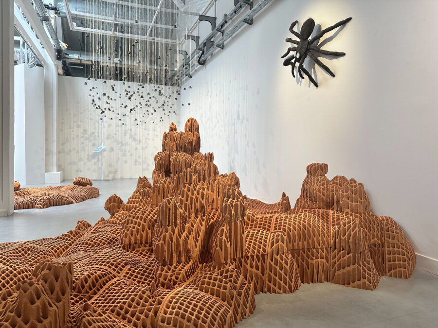 Abandonnons notre vision anthropocentrique pour honorer toute vie terrestre. Pistons l’essaim d’abeilles de l’artiste sonore Félix Blume pour le laisser résonner en nous. Frayons-nous un passage avec les forces obscures de l’araignée fantasmatique de la plasticienne Virginie Yassef. Suivons le voyage cosmogonique de la graine ailée d’un érable réalisée par le designer Porky Hefer. Portée par les vents, elle spirale en figures géométriques au-dessus d’une mer de sel à l’origine de la vie.