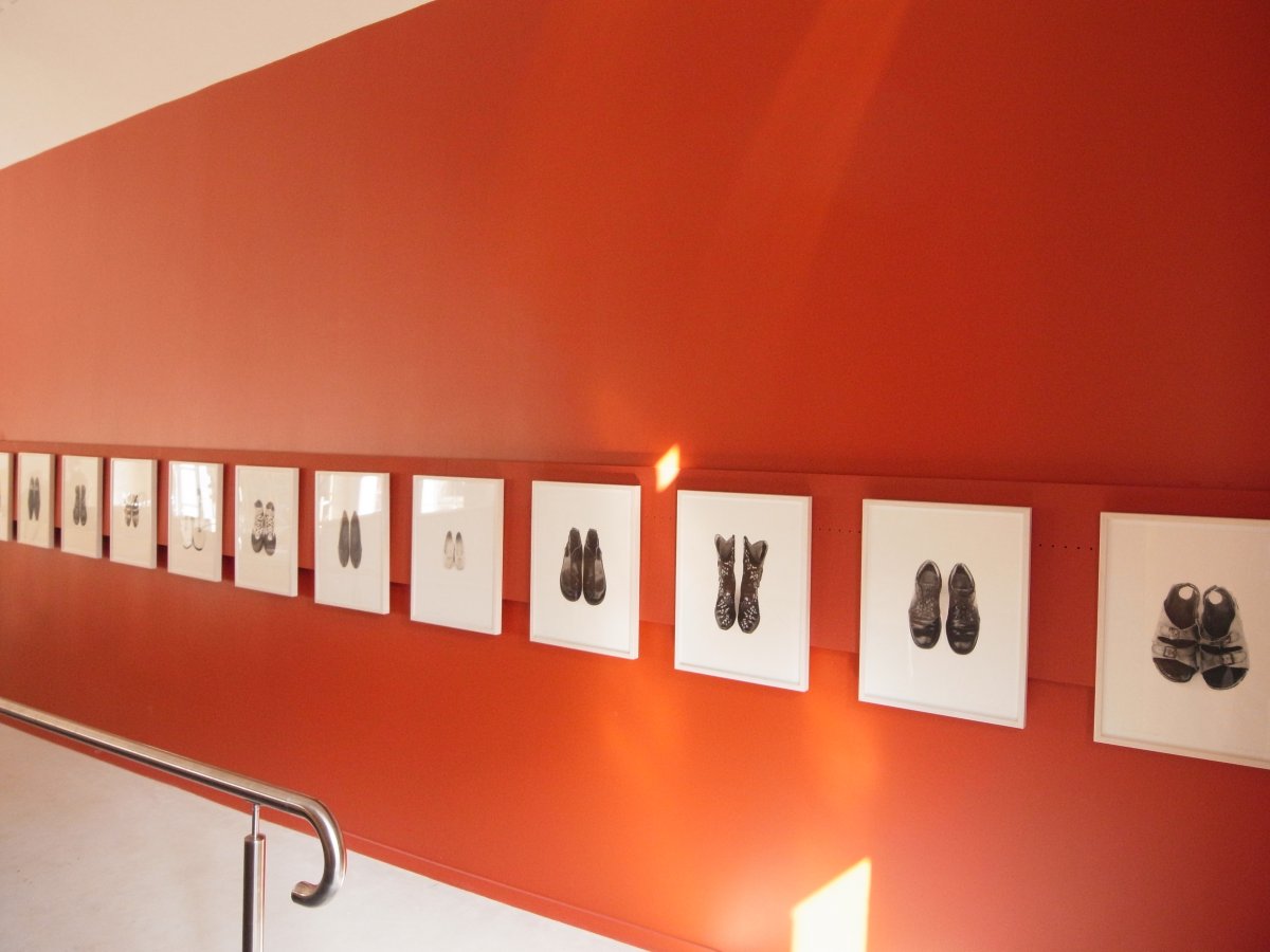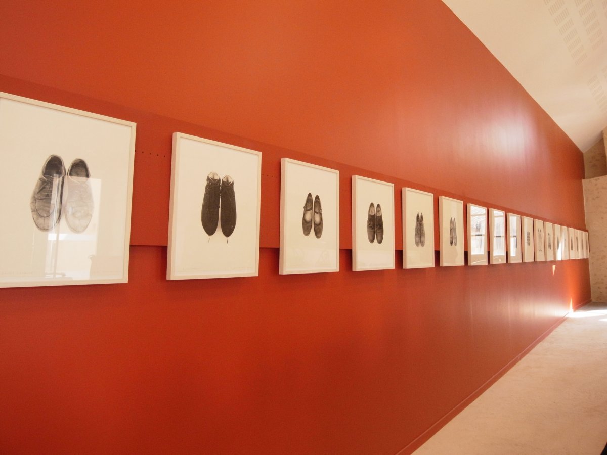 exposition de 20 portraits-chaussures en cuir à l'occasion de l'ouverture de la Cité des tanneurs à Lavausseau (86)