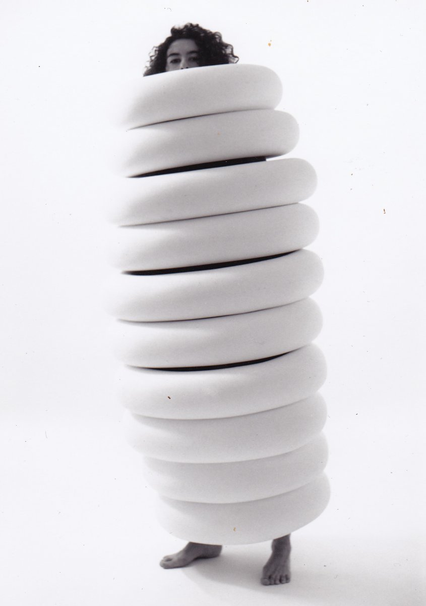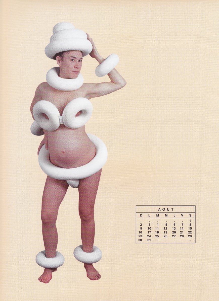 On se souvient de l’image iconique parue dans Technikart (calendrier publié par la Zoo Galerie) : Annie-Laurie Le Ravalec, enceinte, le ventre rond, ceinte des formes rondes qu’elle a créées, mettait en rapport la chair avec la sculpture, les créations de la nature avec celles des artistes, l’espoir des nativités avec celui de l’invention, l’annonciation à la vierge avec Joséphine Baker, Aristide Maillol avec Vivienne Westwood…