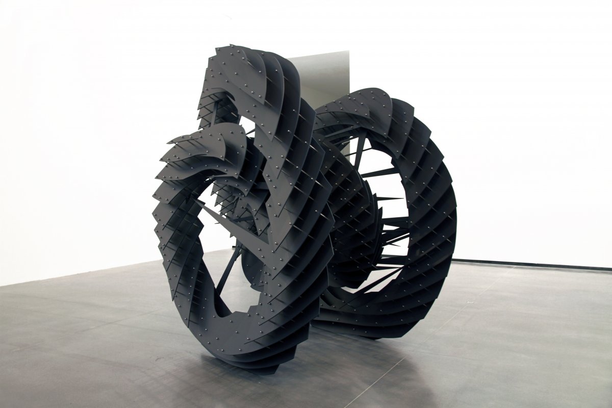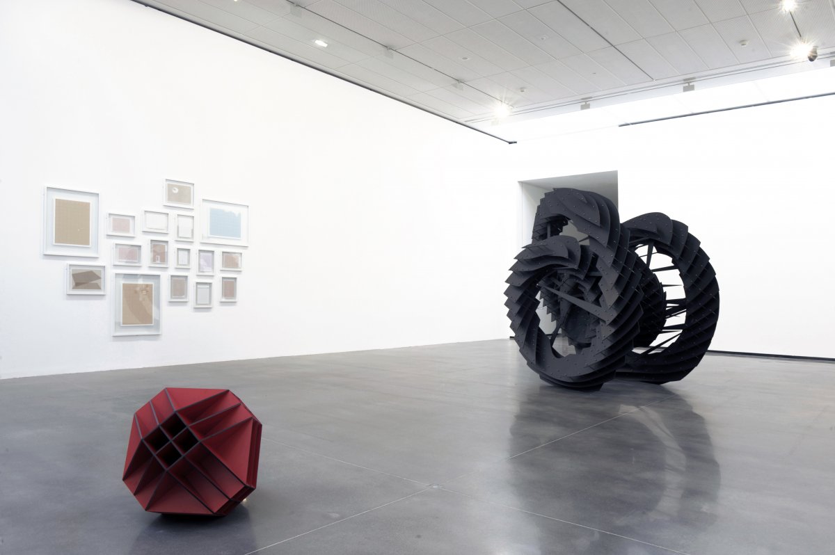 Vincent Mauger, sculpteur également, s’intéresse à la connaissance et aux capacités physiques des matériaux, à leur relation à l’espace et à l’architecture dont il appréhende les limites. Il se confronte lui-même à la matière et aux volumes, use de techniques numériques de modélisation et recourt à des matériaux élémentaires : bois, brique, parpaings, polystyrène, PVC…pour créer dans l’espace des formes qui peuvent devenir expansives jusqu’à modifier leur rapport au lieu. Il crée pour l’exposition deux nouvelles formes «endless» extrêmement sophistiquées qui troublent la vision de l’espace.