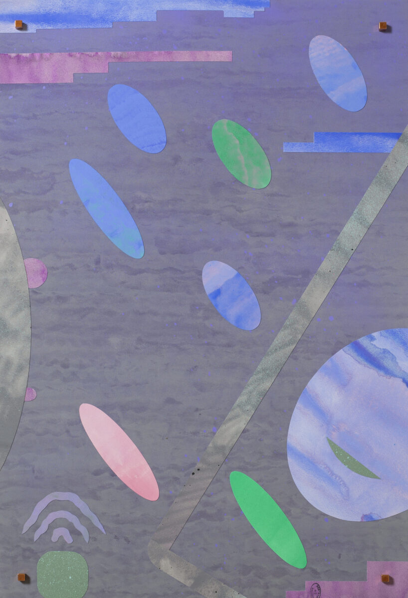 Ce projet pictural naît d’une volonté paradoxale : comment aborder un univers dématérialisé qui nous donne l’illusion d’une évanescence des formes, d’une création auto-engendrée, par des techniques manuelles et traditionnelles — peinture, collage, gravure ?