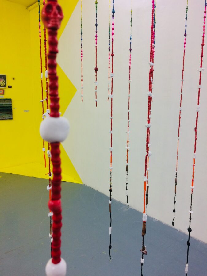 Fils, perles de porcelaine, perles diverses. variable selon le site galerie RDV Nantes sur une invitation de RDV commissariat Jean-François Courtillat