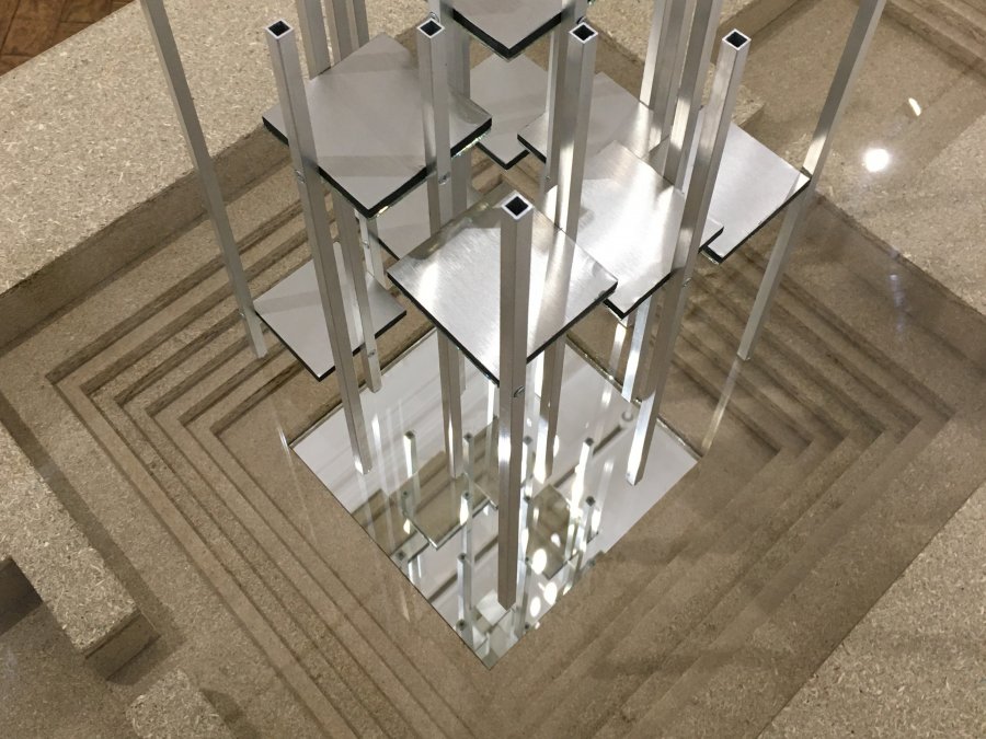 Guillaume Jezy / Jezy Knez, «Depuis les forêts, Monument», 2018, bois, verre, aluminium, miroirs, École d'Arts du Choletais, Cholet, photographie : Guillaume Jezy
