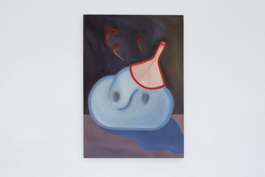 Je travaille autour du signe, des codes, de la simplification par le trait. Inspirée de la bande dessinée et des comics, mes toiles construisent un langage visuel, remplis de symboles assez flous pour rester libre à l’interprétation. Ce sont à la fois des toiles bavardes et muettes : remplies de sens, mais vides de mots, comme une langue inconnue. Picturalement, on voit des objets peu identifiables, maisfamiliers, comme s’ils pouvaient être plusieurs choses à la fois : un moyen de créer des objets qui attestent d’une humanité. Beaucoup de mes peintures sont liées au texte, illustrent une expression ou mélangent les images et les mots, comme des rébus ou jeux de mots.