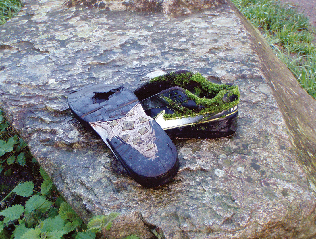 Plusieurs heures de travail seront nécessaires pour récupérer ces dépôts ultimes, ces dernières traces, si ténues finalement qu’elles semblaient irrécupérables. C’est-à-dire sans fonction, sans nom. Prélever, découper, entasser soigneusement : le “tas” est convaincant. Une photographie témoigne de son existence. C’est ce rien du monde que le poète renomme et auquel il redonne vie. Qu’il érige sous nos yeux comme la part maudite de ces lieux détruits, comme le détruit ultime de la destruction, l’informe sans nom, l’absence de chose ( 5 ).