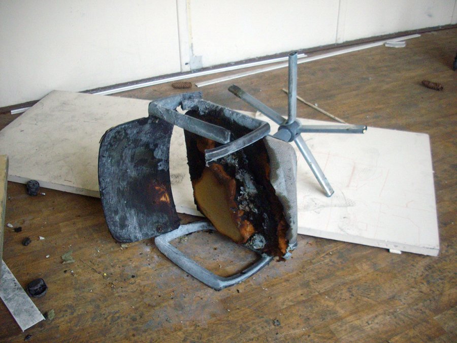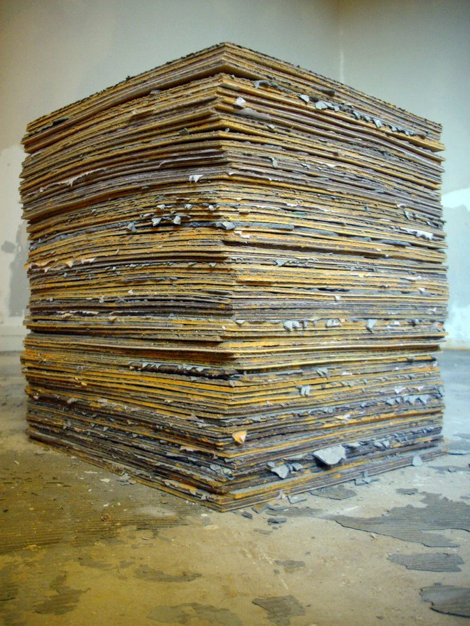 “ J’ai ôté les revêtements. J’ai ôté le sol et les murs, les apparats. Je les ai rangés, à l’image de leur structure portante. J’ai pris un marteau et une vis pour décrocher le sol. J’ai frappé, tiré, entassé, pendant des heures. Puisqu’il fallait partir. Reste la photographie de ce tas. Contenu de grands ensembles. Des mémoires artificielles du lieu ”( 3 ).