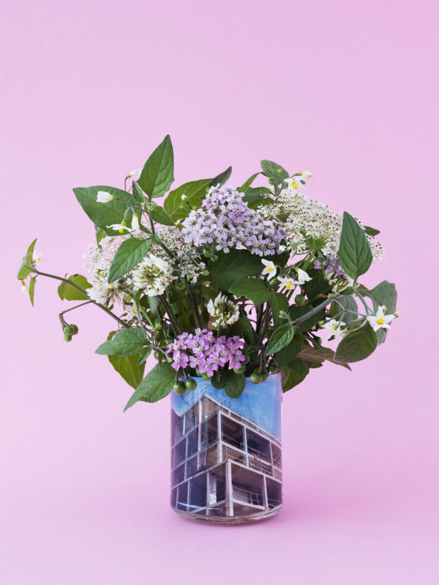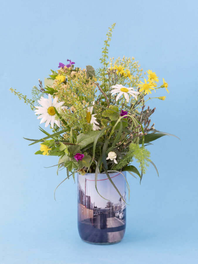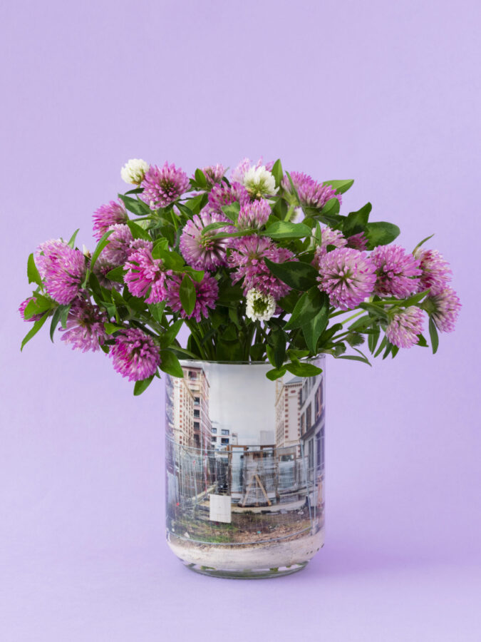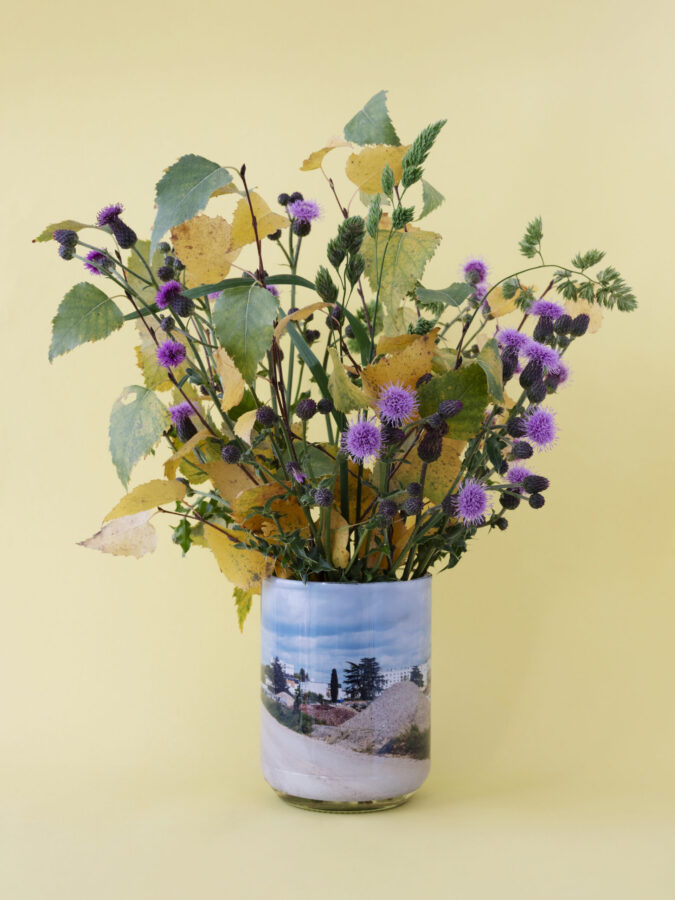 Il s’agit de parcourir des lieux pour les photographier et y cueillir des fleurs. Arpenter d’abord les espaces, pour laisser le corps s’imprégner du territoire, voir ce qu’il nous montre de lui et de nous. Collecter par la photographie et les bouquets, des fragments de paysage, des saisissements visuels et physiques, qui convoquent nos sens et nos expériences du réel. Placer ensuite les images imprimées, ainsi que les végétaux cueillis dans des vases, pour les photographier sur un fond coloré avec un éclairage de studio.