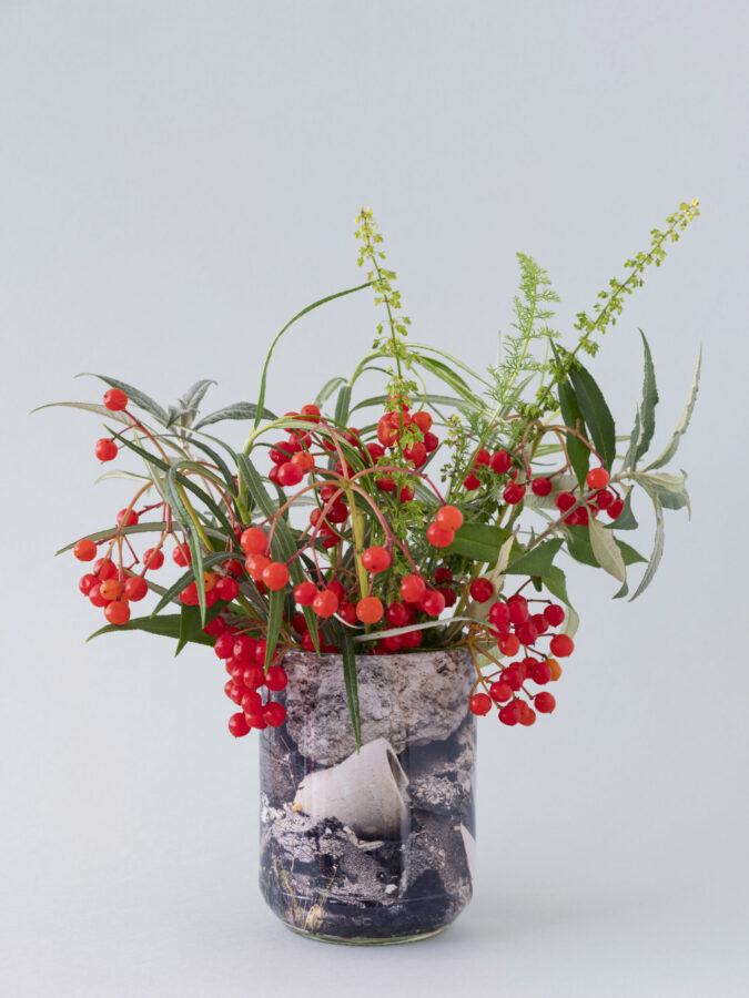 – le vase avec une image représente l’imaginaire et la mémoire. Le vase contient en plus de l’eau, une photographie prise lors d’explorations où le corps et l’esprit se laissent conduire par le regard. Il s’agit de prises de vue intuitives, spontanées, qui font de l’acte photographique un saisissement où la photographe est bien plus le sujet que l’objet de son image.