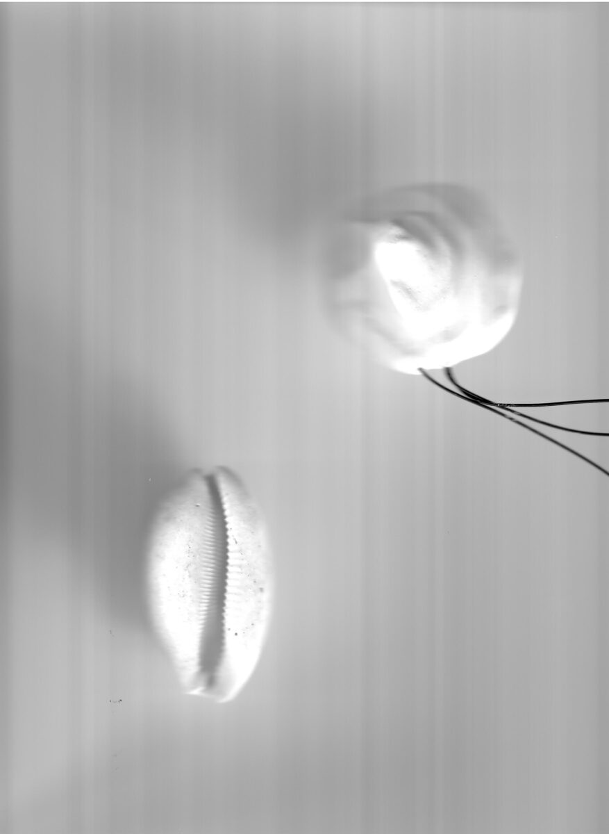 Ensuite, le jeu des mille euros spécial jeunes pendant la pause de midi à mon atelier en décembre 2023. La question : qu’entend-on dans les coquillages ? Et sa réponse non, ce n’est pas l’écho de la mer que l’on entend, mais bien notre propre écho, le ressac du sang et les craquements de notre corps me rappellent aux projections fictives et poétiques que l’on fait sur les choses autour de nous.