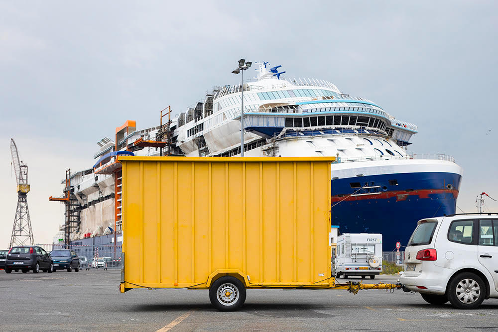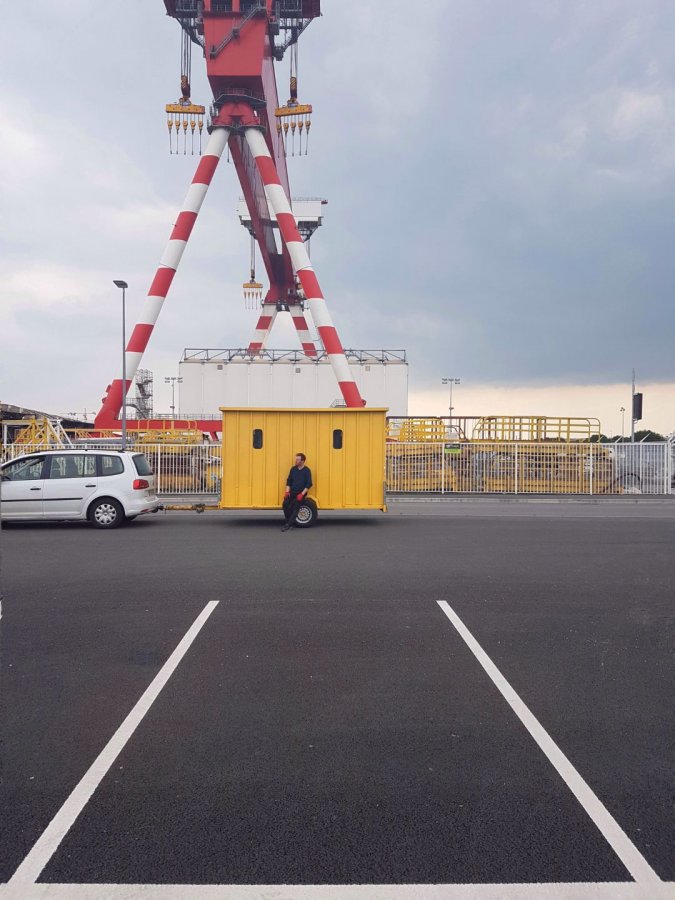 Réalisation d’un film de la performance ainsi que du nomadisme de l’objet devenant sculpture. Une métamorphose d’une cabane de chantier en pièce sculpturale par un processus performatif de martèlement de l’intérieur au long de son itinérance de Nantes à Saint-Nazaire et surtout d’espaces en espaces. Le dispositif consiste à occuper au quotidien la cabane de chantier pendant sa métamorphose et son déplacement sur plusieurs sites urbains ou naturels aux résonances différentes avec cette action selon les espaces. Les lieux faisant office de caisses de résonances.