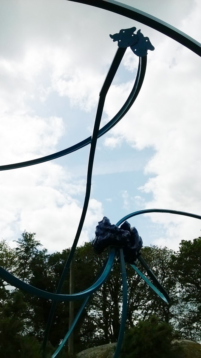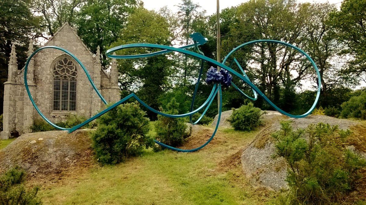 Sculpture en acier peint et grès émaillé 750 × 590 × 280 cm Lieu-dit Saint Antoine Lanrivain sur une invitation de l'association Dialogues avec la Nature